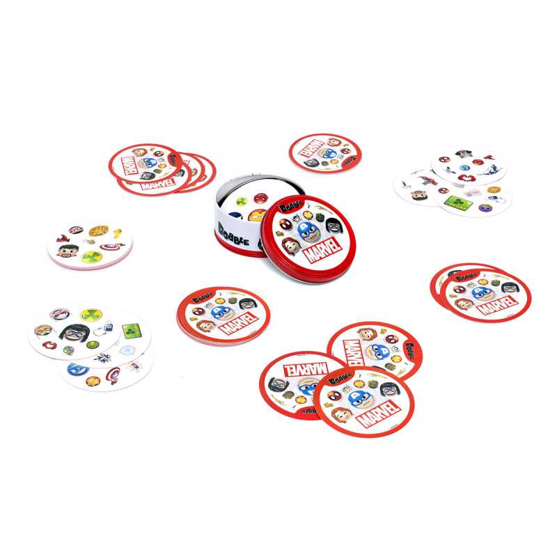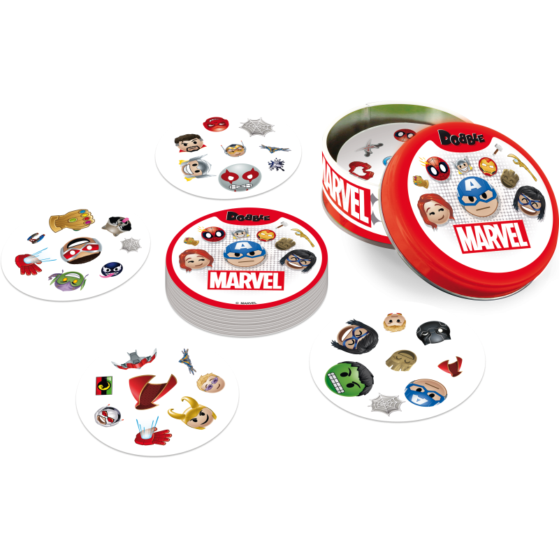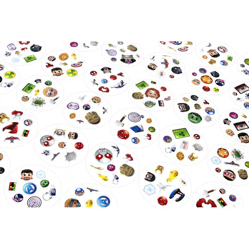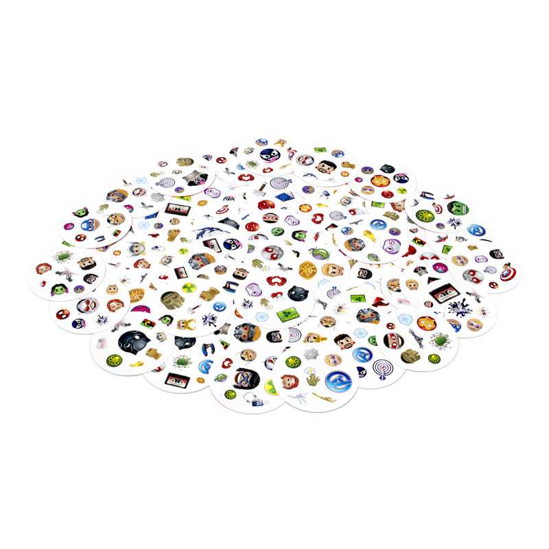 Zabierz Hulka, Lokiego i Ant-Mana gdzie tylko zechcesz i baw się, szukając par w popularnej grze towarzyskiej! Spójrz na pierwszą kartę, którą trzymasz w ręku oraz na tę, która leży na środku stołu. Znajdź na nich wspólny obrazek, nazwij go i szybko pozbądź się swojej karty. Teraz następna! Tylko nie zwątp, dwie karty zawsze łączą się dokładnie jednym symbolem!