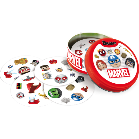 W Dobble Marvel Emoji można grać na wiele sposobów, a 5 z nich jest opisanych w instrukcji jako mini-gry. Aby utrudnić zabawę symbole na kartach bywają odwrócone i miewają różne rozmiary. Same karty są okrągłe i kolorowe, a każda z nich ma unikalny zestaw grafik związanych ze światem superbohaterów Marvela.