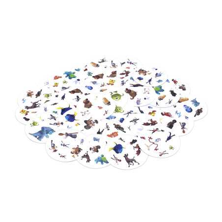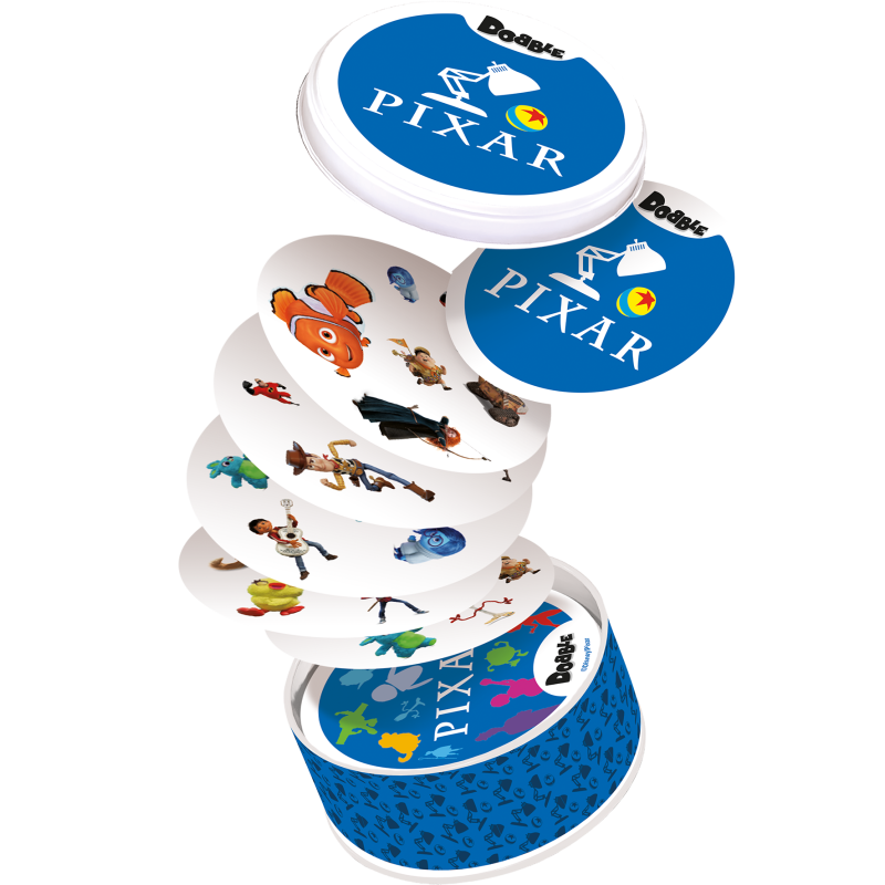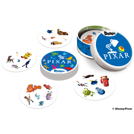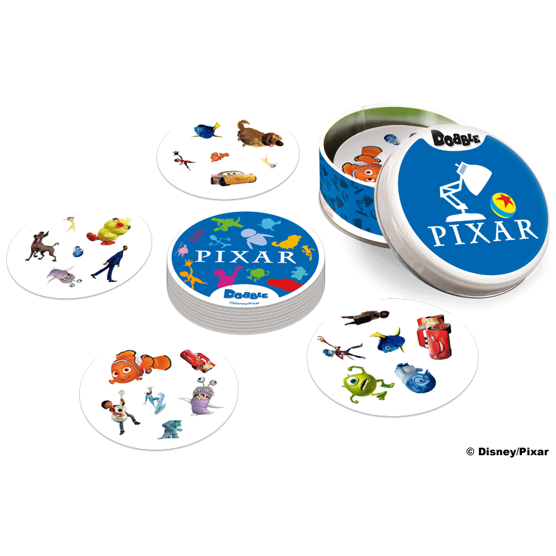 W Dobble można grać na wiele sposobów, a 5 z nich jest opisanych w instrukcji jako mini-gry. Aby utrudnić zabawę symbole na kartach bywają odwrócone i miewają różne rozmiary. Same karty są okrągłe i kolorowe, a każda z nich ma unikalny zestaw symboli związanych ze światem bajek Pixara.