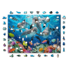 Ta Drewniana Układanka zabiera Cię w zapierający dech w piersiach morski rejs. W centrum tej morskiej sceny, delfiny z błyszczącymi uśmiechami uchwytują istotę radości, pozując do uroczej podwodnej selfie. Nie są sami. Ryby w brilliantnych odcieniach, obok misternie uformowanych koralowców i dryfujących wodorostów, dodają kolorów do tej sceny.
