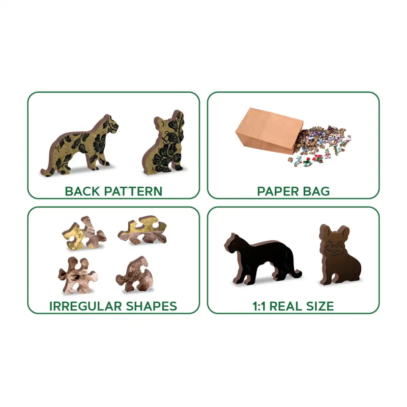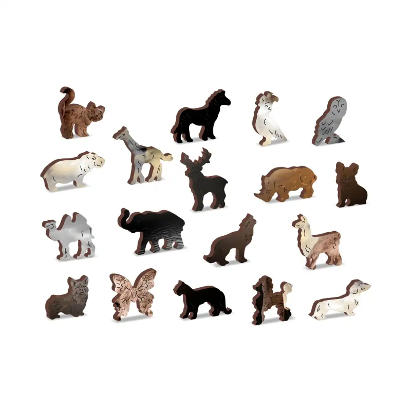 Każdy fragment tego dzieła jest unikalny w projekcie, zapewniając doskonałe dopasowanie. Ozdobiony dużymi elementami tematycznymi – od dzikiej przyrody do zabytków – każda stworzona układanka oferuje wyjątkową przygodę z montażem.