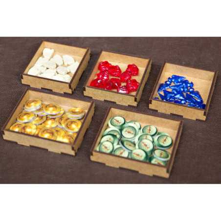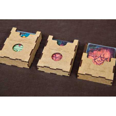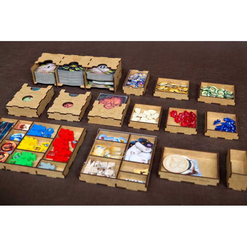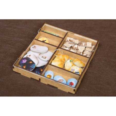Insert jest przygotowany w formie "otwórz, wyłóż na planszę, graj" - przygotowaliśmy dla Was następujące pojemniki, które wyłożycie na planszę po otwarciu pudełka: