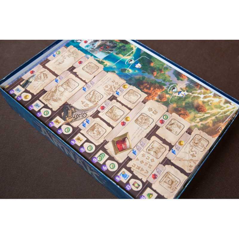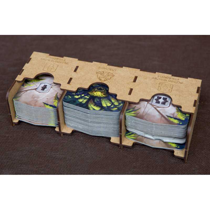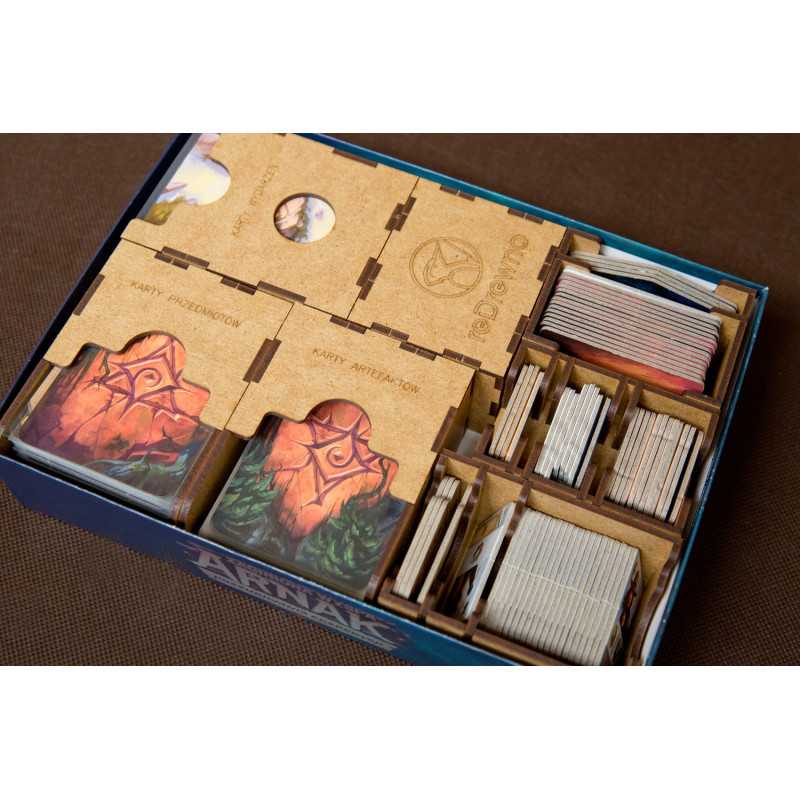 Insert do gry strategicznej Zaginiona Wyspa Arnak z dwoma dodatkami Przywódcy Ekspedycji oraz Poszukiwania Ekspedycji. Do spakowania insertu wraz z grą potrzebujesz dwóch pudełek: z gry podstawowej oraz z dodatku. Insert mieści karty w koszulkach klasy Premium o grubości do 110 mikronów. Na zdjęciach karty w koszulkach Rebel Premium (90 mikronów).