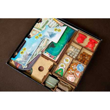 Insert pasujący do gry 7 Cudów Świata: Pojedynek wraz z dodatkami. Na zdjęciach przedstawiono przykładowe zastosowanie dla gry podstawowej wraz z dodatkami Panteon i Agora. Insert pomieści karty w koszulkach klasy PREMIUM o grubości do 90 mikronów (na zdjęciach karty w koszulkach Rebel Premium).