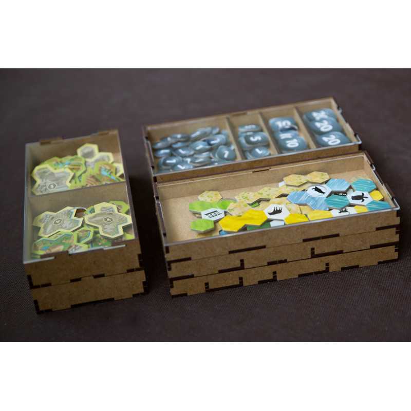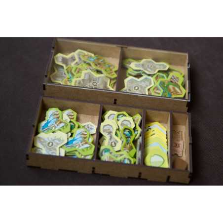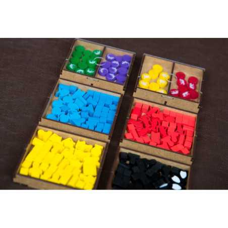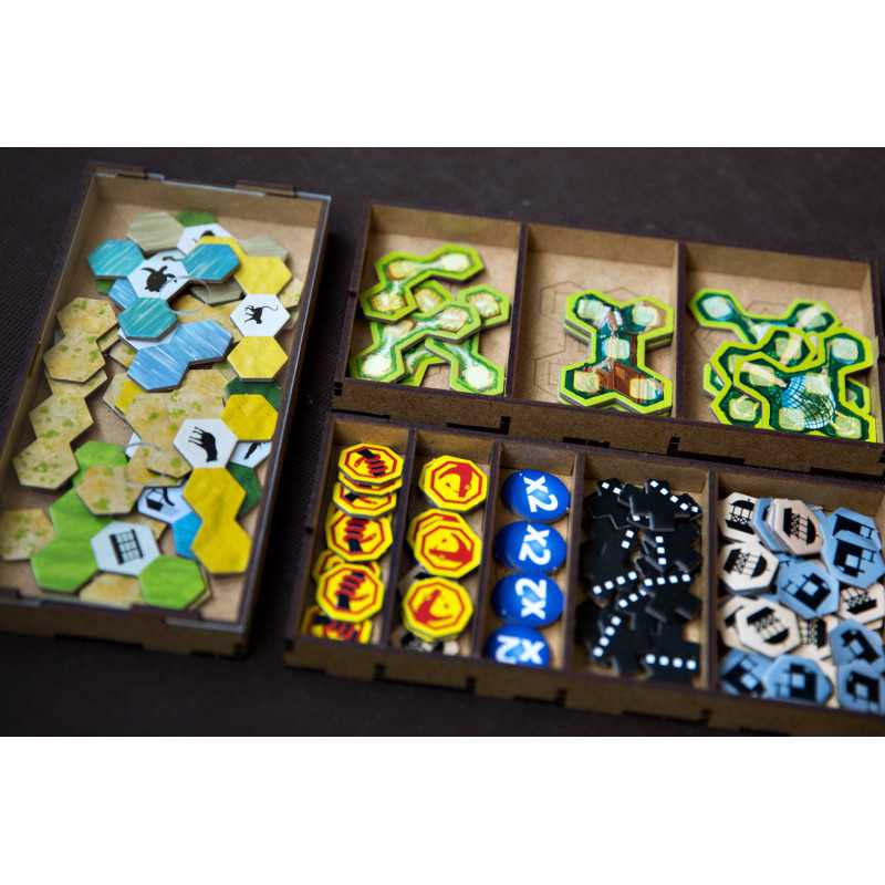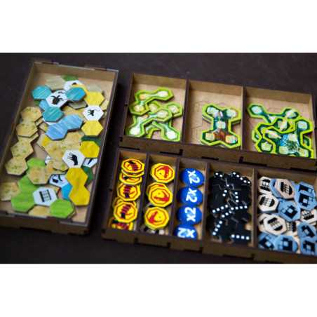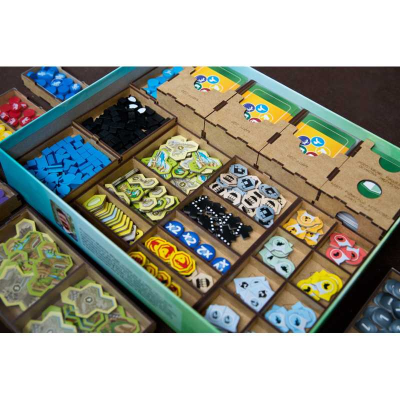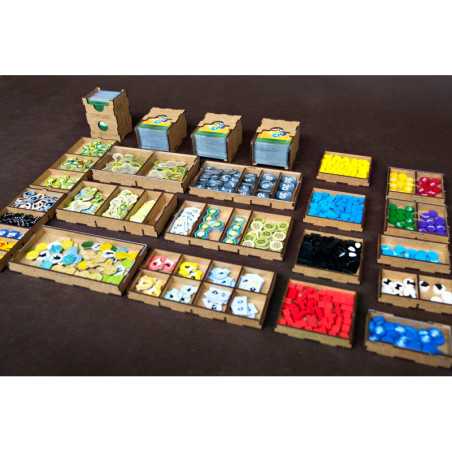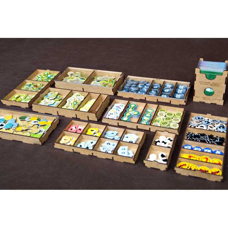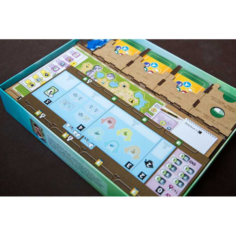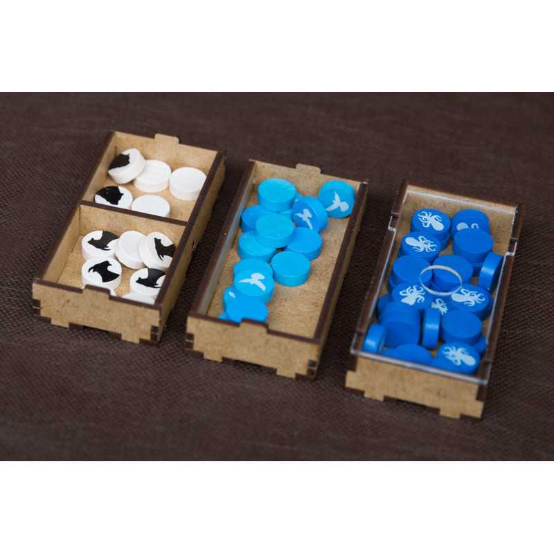 Insert pasujący do gry strategicznej Ark Nova wraz z dodatkiem Wodny Świat oraz Pakietem Map. Insert mieści karty w koszulkach klasy Premium (do 100 mikronów). Na zdjęciach karty w koszulkach Portal Games Premium (100 mikronów). Insert pomieści również dodatkowe 102 drewniane znaczniki zwierząt w 7 różnych kolorach, które były dostępne w przedsprzedaży w sklepie Portal Games. Insert jest przygotowany w formie "otwórz, wyłóż, graj", czyli przygotowaliśmy dla Was pojemniki, które wyłożycie na planszę oraz stół po otwarciu pudełka.