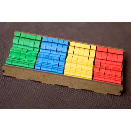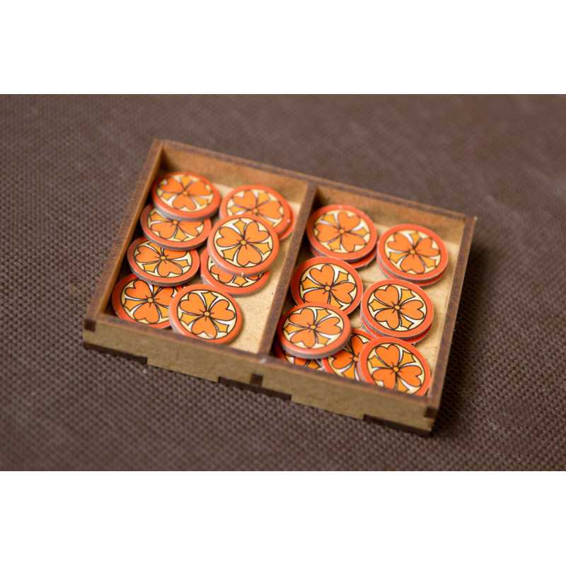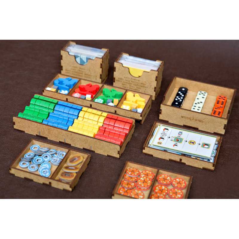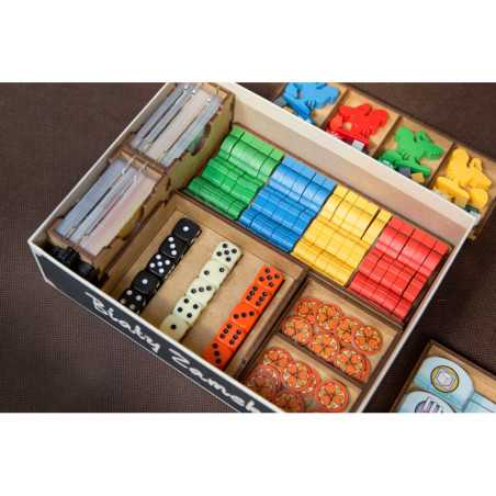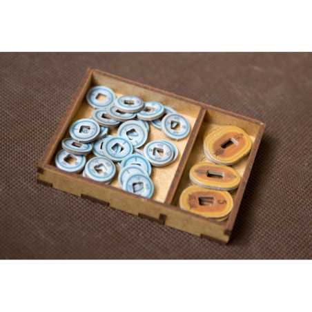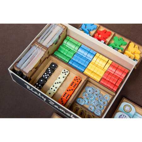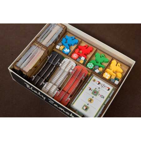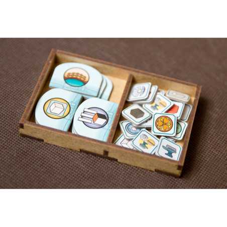 Insert posiada pojemniki na żetony do wyłożenia na stół pozwalające utrzymać porządek podczas rozgrywki.
