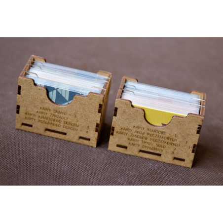 Insert pasujący do gry strategicznej Biały Zamek - gra podstawowa. Insert mieści karty w koszulkach klasy Premium (do 110 mikronów). Na zdjęciach karty 44x68 mm (Mini European) w koszulkach Portal Games Standard "D" (100 mikronów). Wieko pudełka nie domyka się o około 5-6 mm.