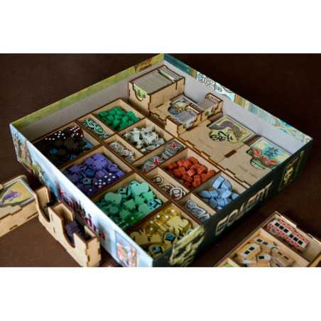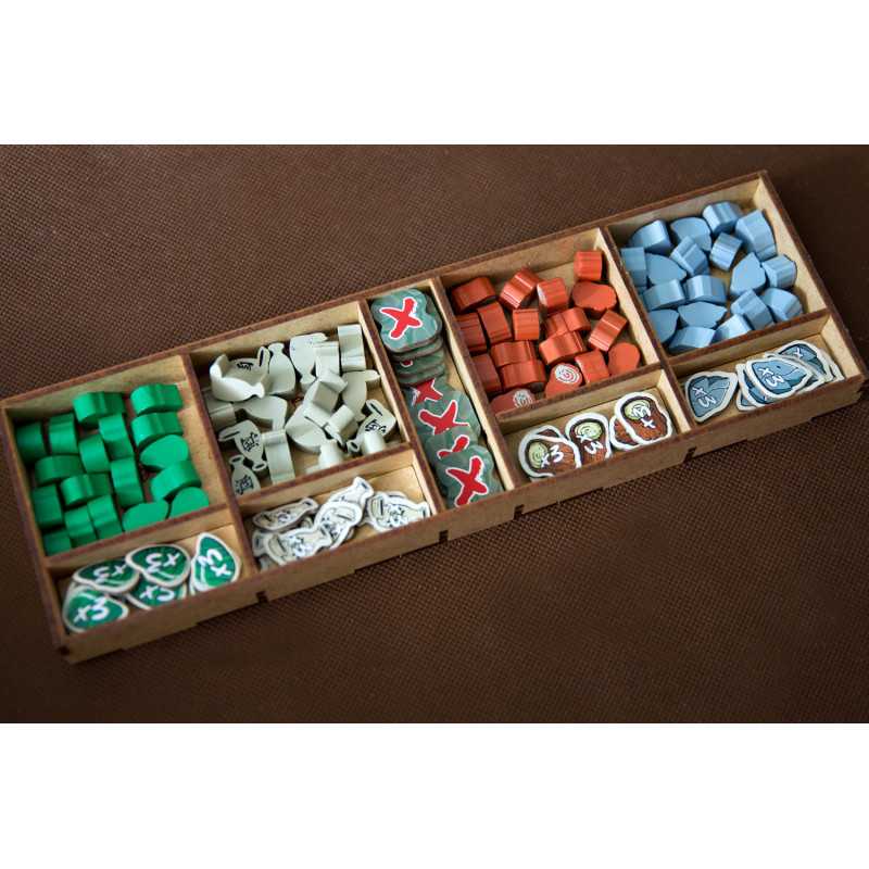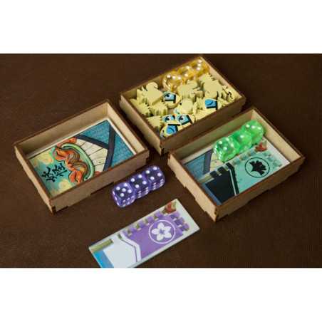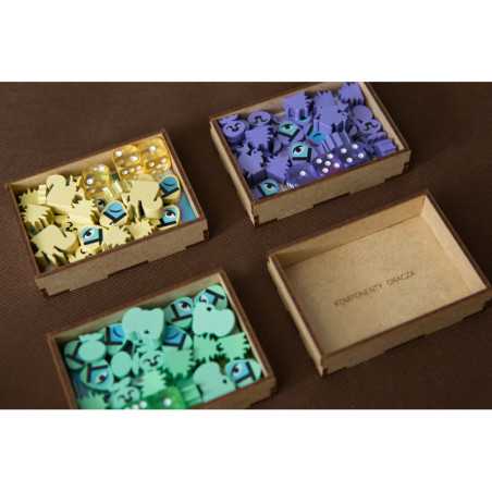 Insert jest przygotowany w formie "otwórz, wyłóż na planszę, graj" - przygotowaliśmy dla Was następujące pojemniki, które wyłożycie na planszę lub stół po otwarciu pudełka: