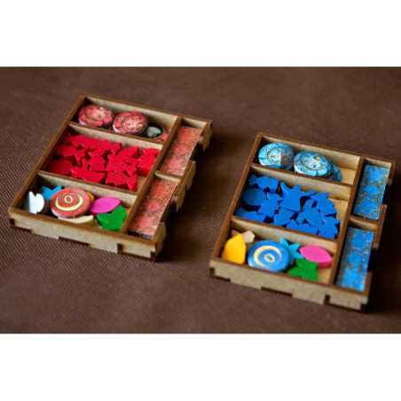 Wierzchnie pojemniki na żetony akcji, portale oraz komponenty Gracza posiadają zasuwki z pleksi. Takie rozwiązanie umożliwia przechowywanie pudełka w pionie i zawartość pojemników nigdy się Wam nie wysypie, ponadto podczas rozgrywki mogą pełnić funkcję wygodnych podajników.