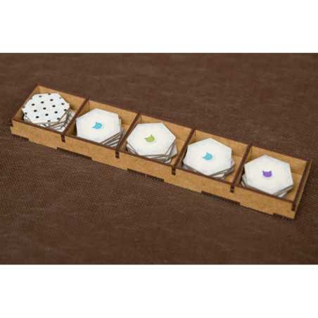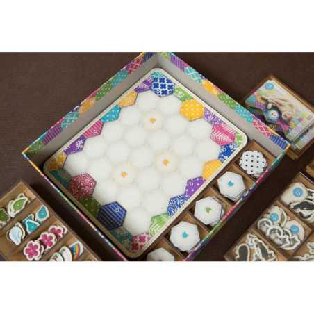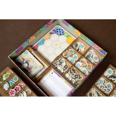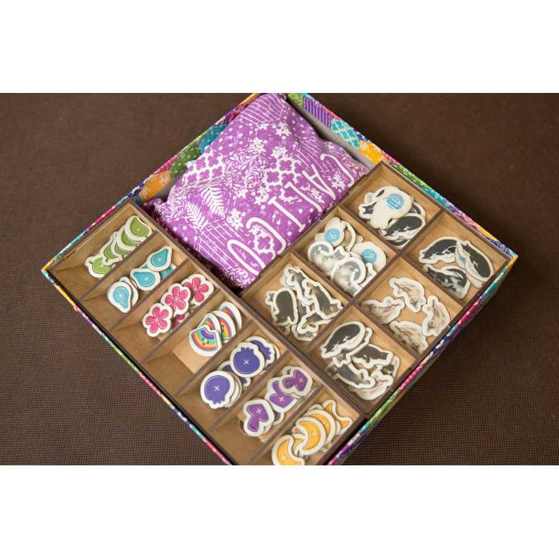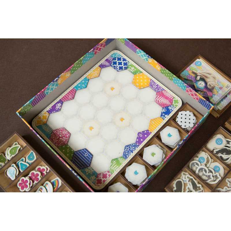 Oferta obejmuje insert pasujący do gry Calico wraz z promką z wersji kickstarter. Na zdjęciach przedstawiono przykładowe zastosowanie dla gry podstawowej bez wyżej wymienionej promki.