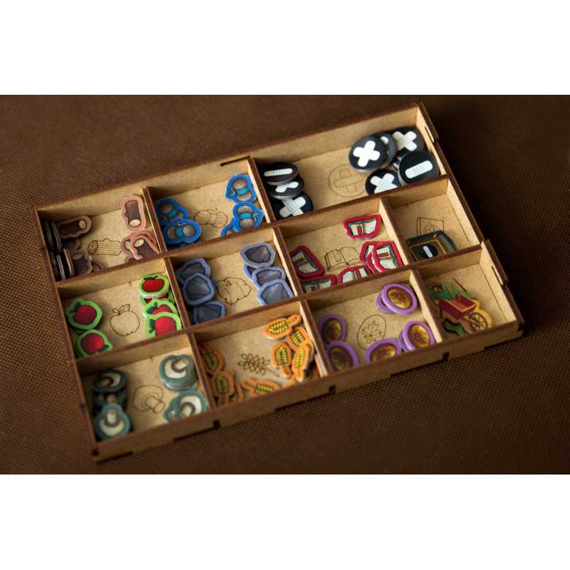 Insert pasujący do rodzinnej gry Dobry Rok (wydanie zwykłe). Insert mieści karty w koszulkach klasy Premium (do 110 mikronów). Przewidzieliśmy więcej miejsca na przechowywanie zalaminowanych kart łąki i lasu.