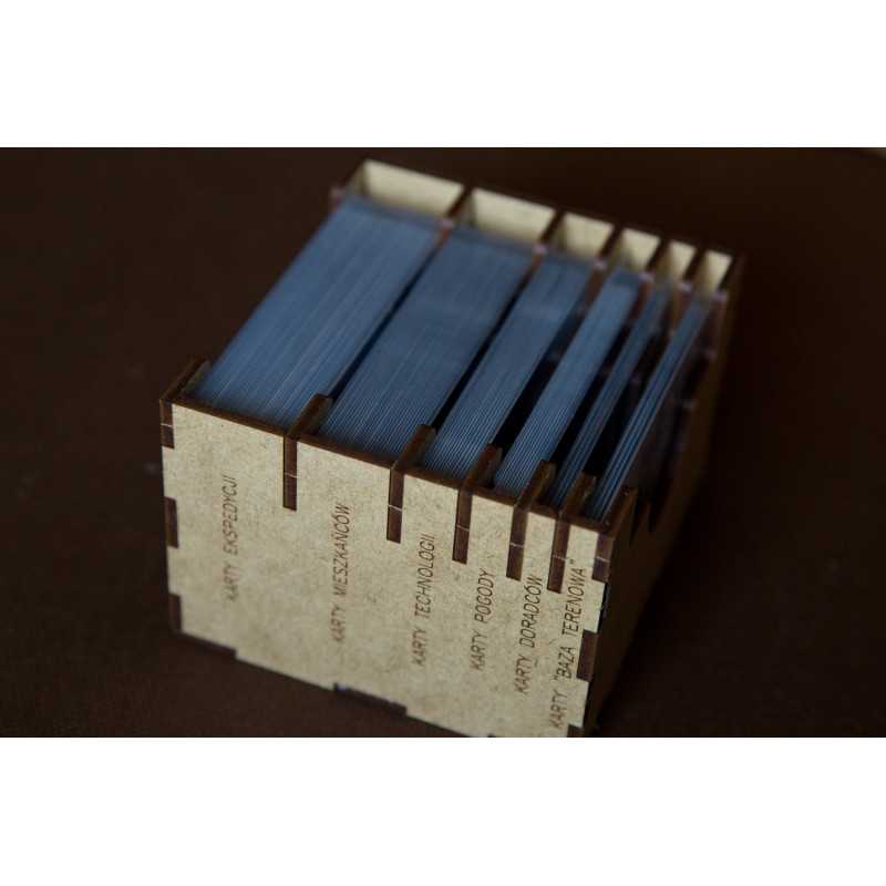 Insert pasujący do gry strategicznej Frostpunk. Insert pomieści karty w koszulkach klasy Premium o grubości do 110 mikronów (na zdjęciach karty w koszulkach Gamegenic Prime).