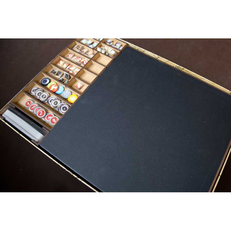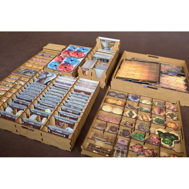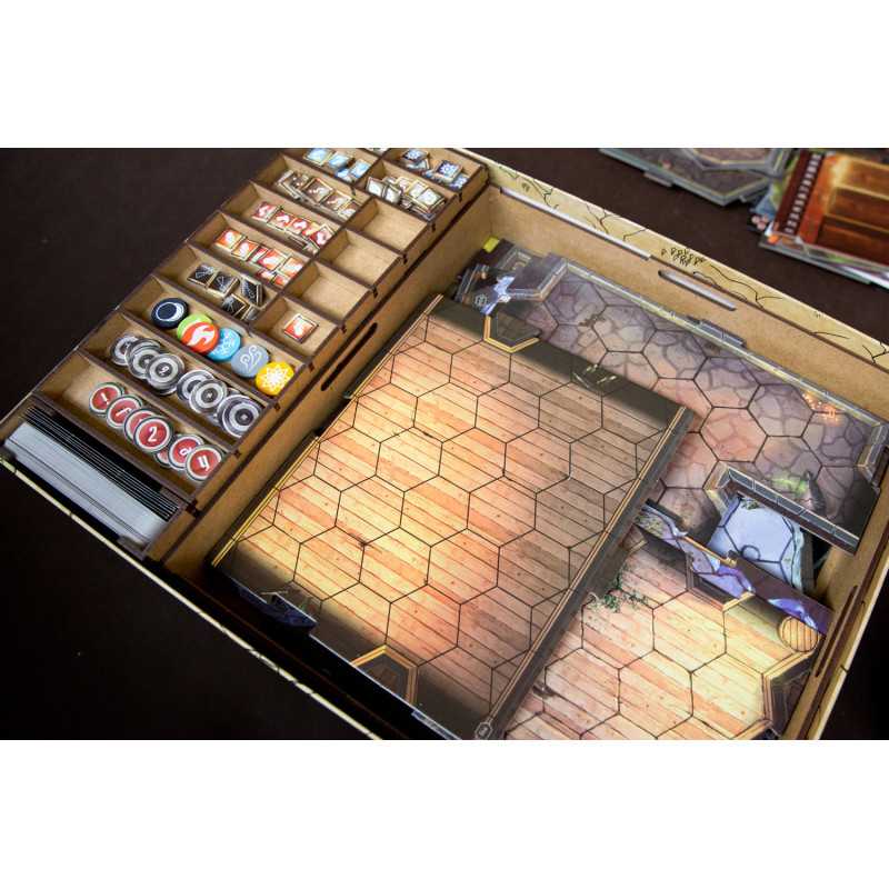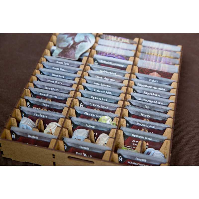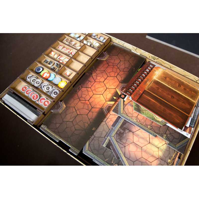Insert pasujący do gry przygodowej Gloomhaven. Insert mieści grę podstawową bez dodatku. Pudełko z grą zamyka się całkowicie.