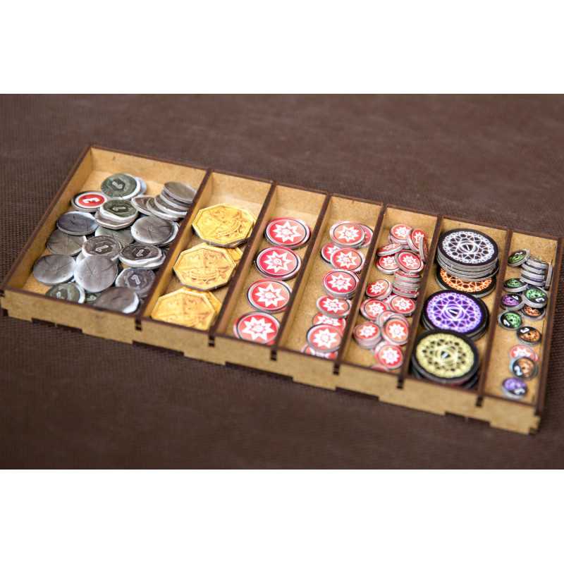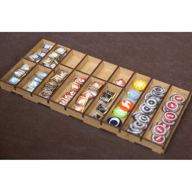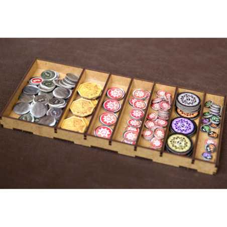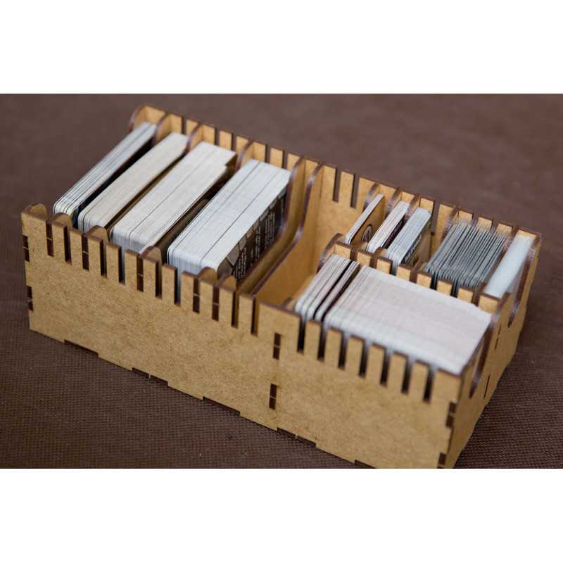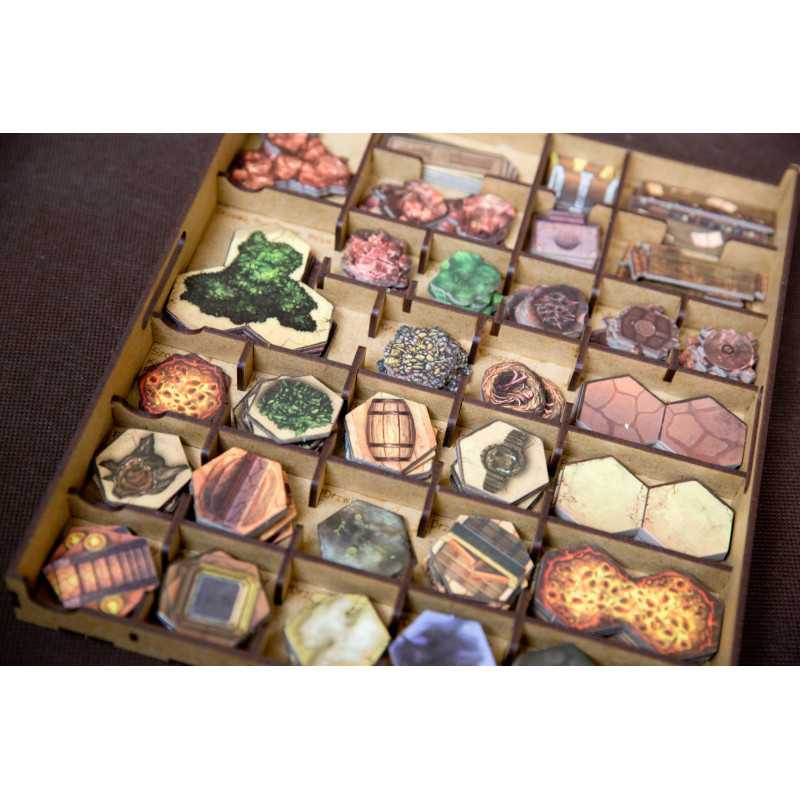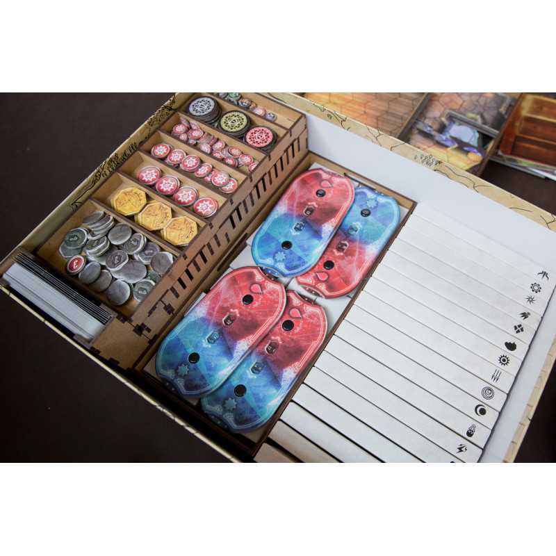 Insert pasujący do gry przygodowej Gloomhaven. Insert mieści grę podstawową bez dodatku. Pudełko z grą zamyka się całkowicie.