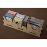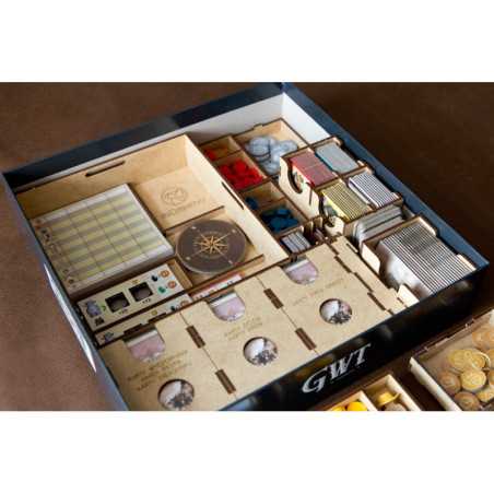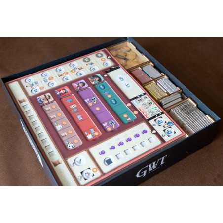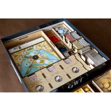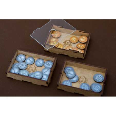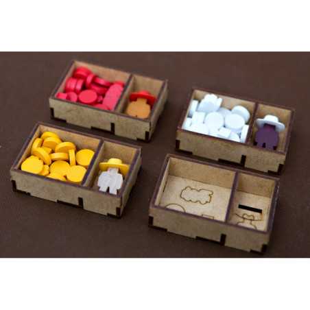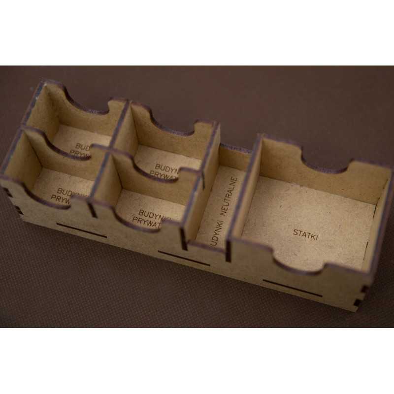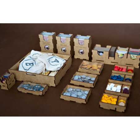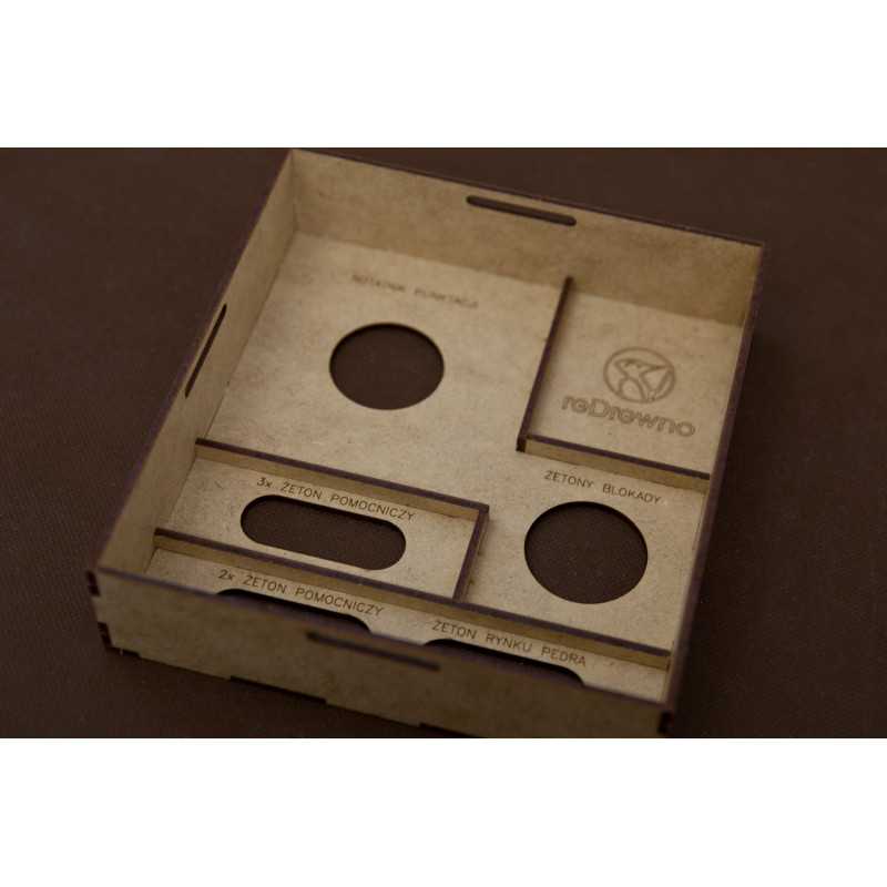 Pojemniki w insercie posiadają grawery ułatwiające posegregowanie elementów. Woreczki przechowywane są razem z żetonami w środku, nie trzeba ich wysypywać. Pojemniki w drobnymi żetonami są zasuwane co pozwala na pionowe przechowywanie pudełka.