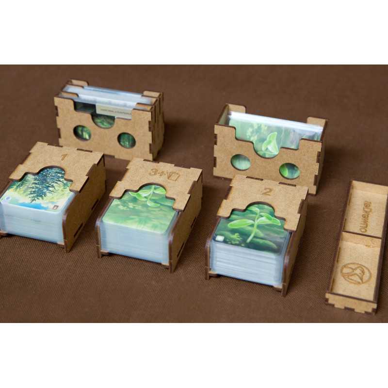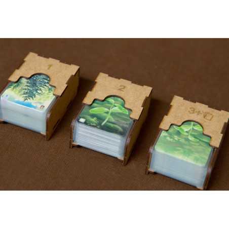 Insert zawiera 3 pojemniki na karty do wyłożenia na stół, które stanowią podajniki do kart. Dodatkowy pojemnik na karty pozwala przechowywać nadmiar kart odłożonych po przygotowaniu rozgrywki.