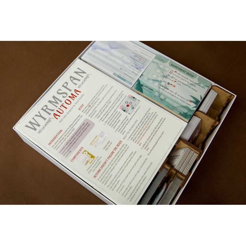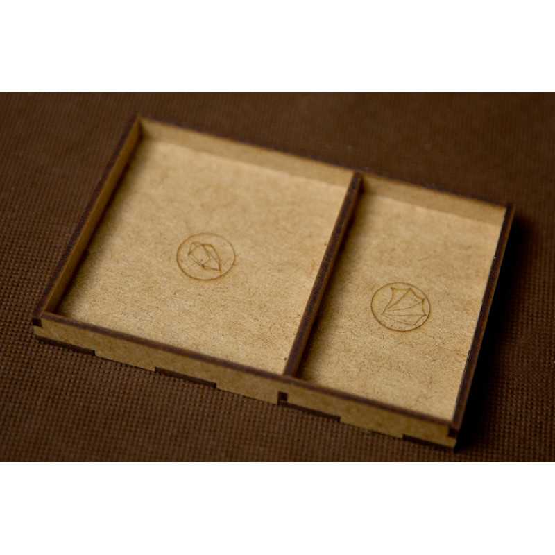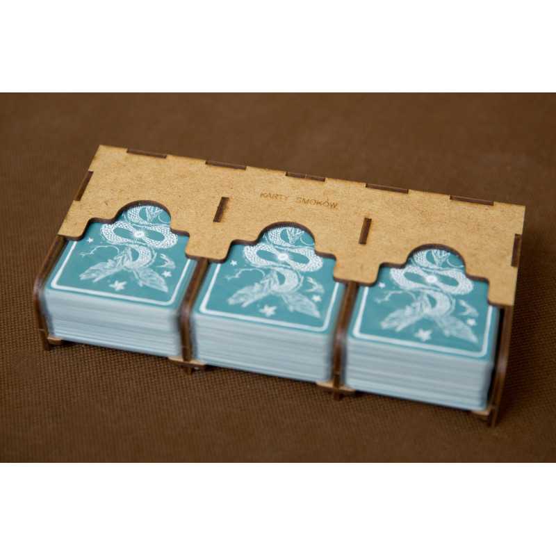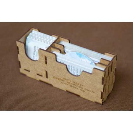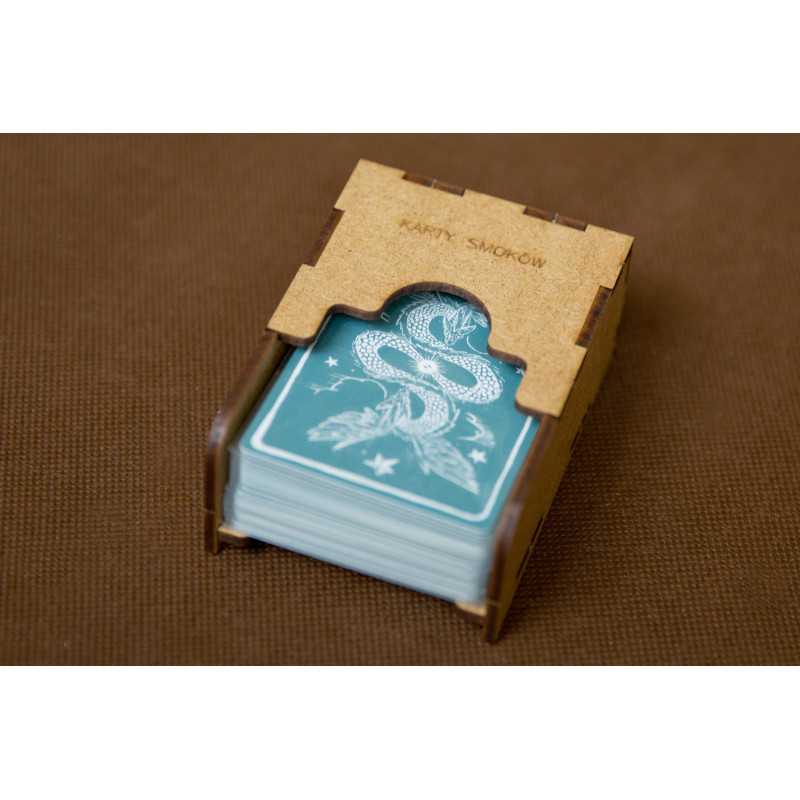 Insert pasujący do gry strategicznej Na Skrzydłach Smoków. Insert mieści karty w koszulkach klasy Premium do 110 mikronów. Na zdjęciach karty w koszulkach Rebel Premium (90 mikronów). Pudełko zamyka się bez uniesienia wieka. Insert mieści również metalowe monety oraz drewniane surowce.