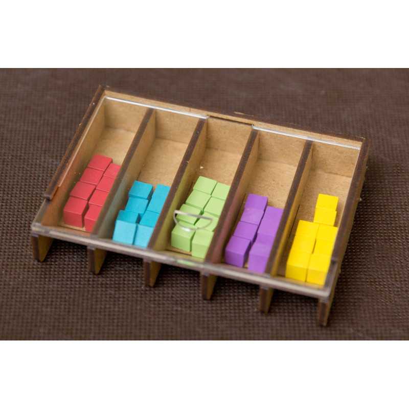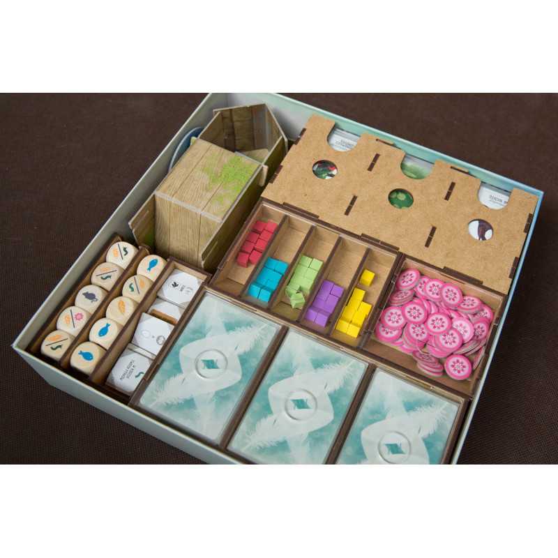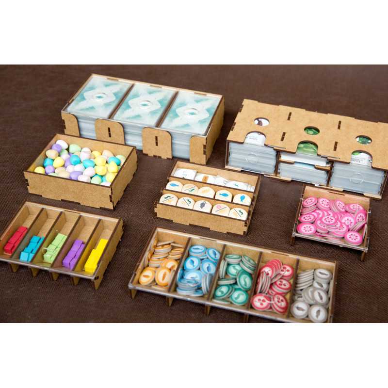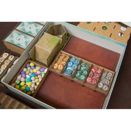 Gra zawiera bardzo dużo kart, dlatego specjalnie do rozgrywek przygotowane są dwa podajniki różnego typu, których można niezależnie używać. Jeden z pojemników ma specjalne ograniczniki i służy do wyłożenia kart do gry. Podajniki posiadają plastikowe zasuwki, dzięki czemu karty się nie wysuwają. W insercie znajdują się również wygodne podajniki na żetony pożywienia, nektaru oraz na kostki akcji, które ułatwią dociąganie wymienionych elementów.