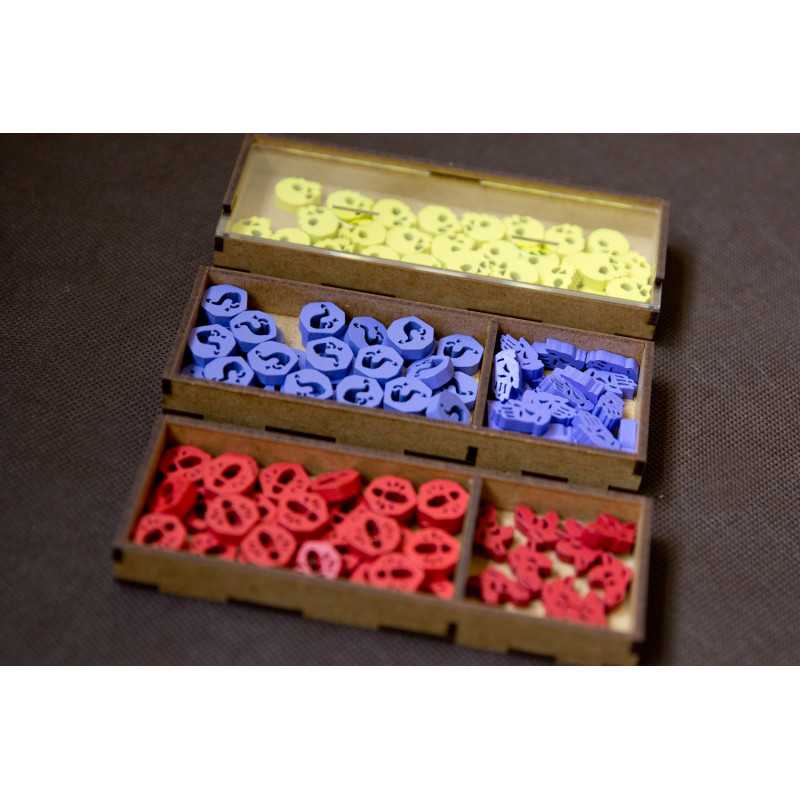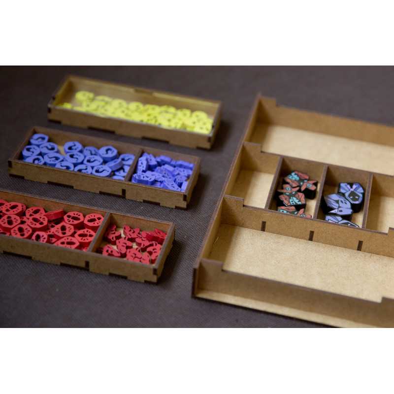 Insert posiada 2 podajniki na złożone talie Wiedźmy oraz Łowcy oraz 3 pojemniki na żetony do wyłożenia na stół pozwalające utrzymać porządek podczas rozgrywki.