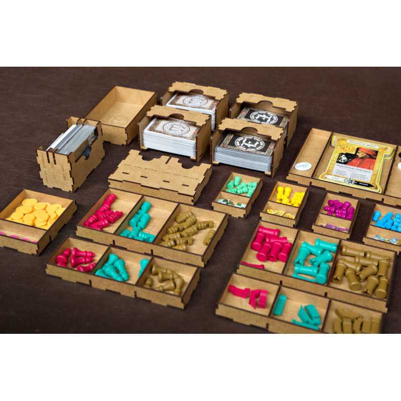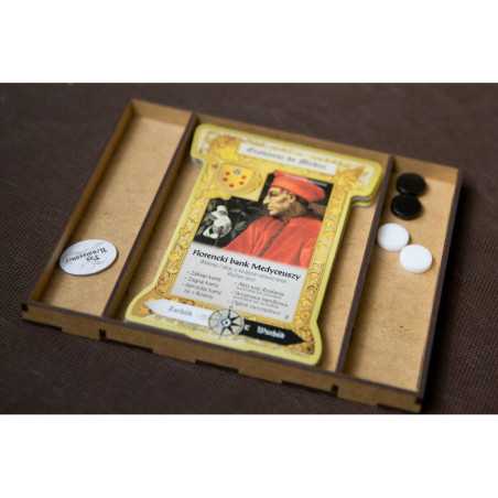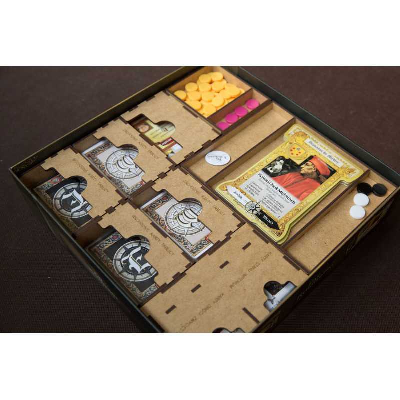 Insert pasujący do gry strategicznej Pax Renaissance. Insert pomieści również dodatek Era reformacji oraz metalowe monety i rubiny. Insert mieści karty w koszulkach klasy Premium o grubości do 110 mikronów. Na zdjęciach karty w koszulkach Rebel Premium (90 mikronów).