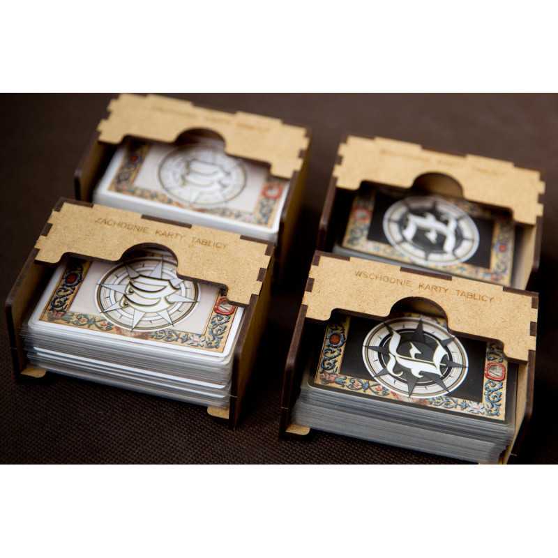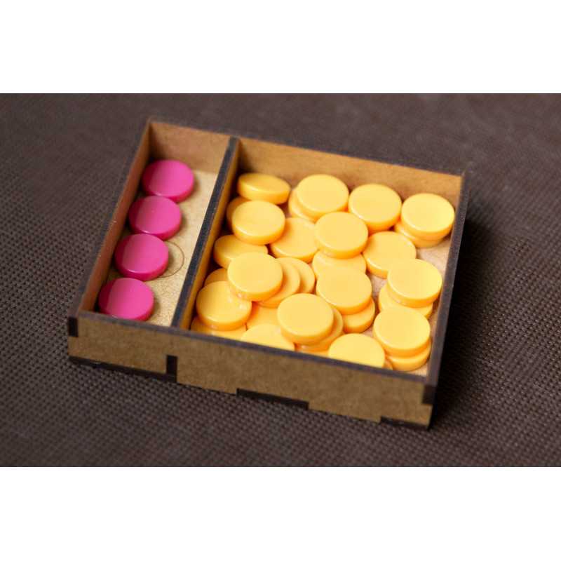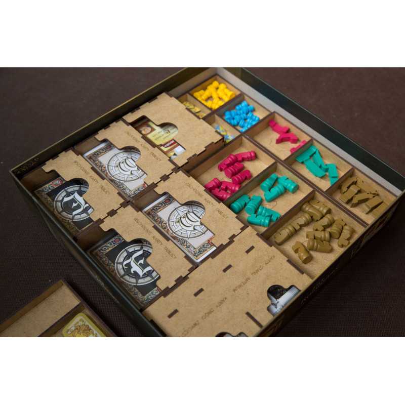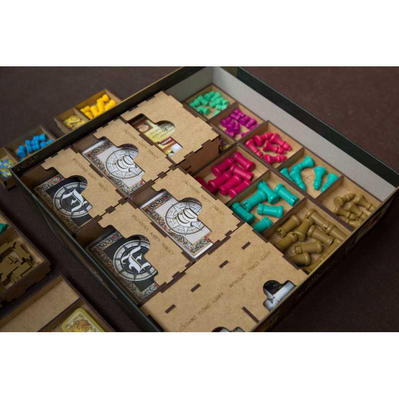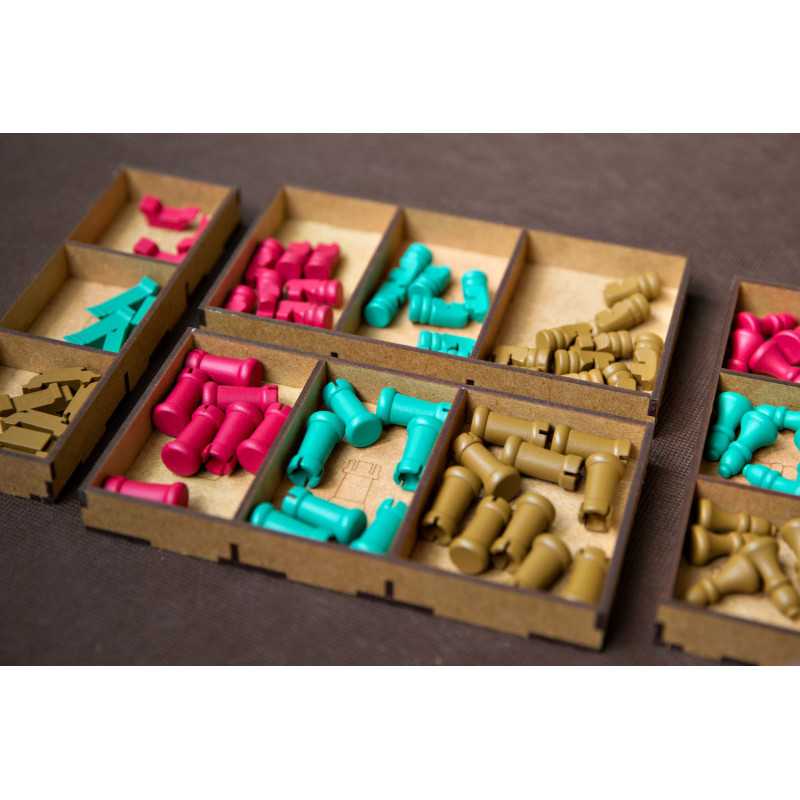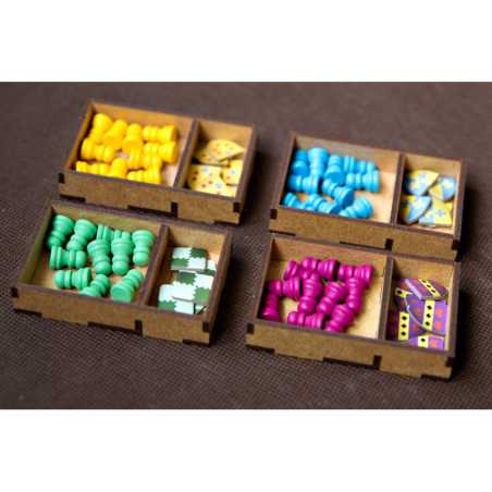 Insert jest przygotowany w formie "otwórz, wyłóż na planszę, graj" - przygotowaliśmy dla Was następujące pojemniki, które wyłożycie na planszę oraz stół po otwarciu pudełka: