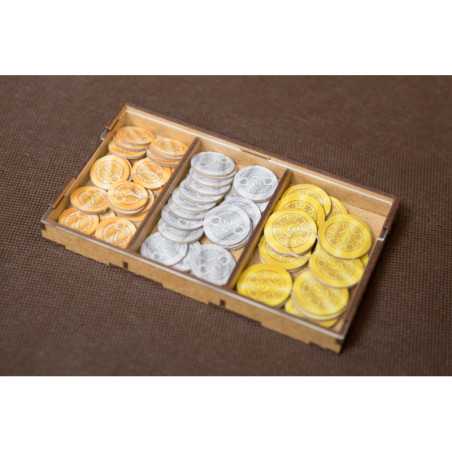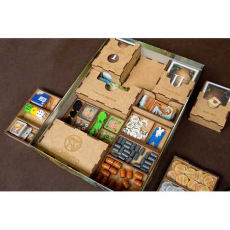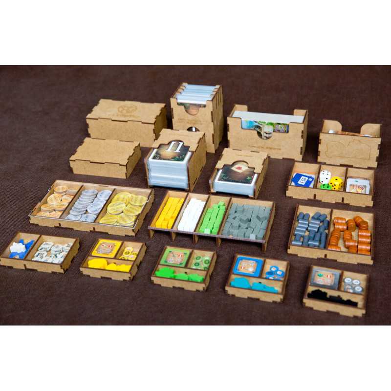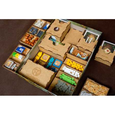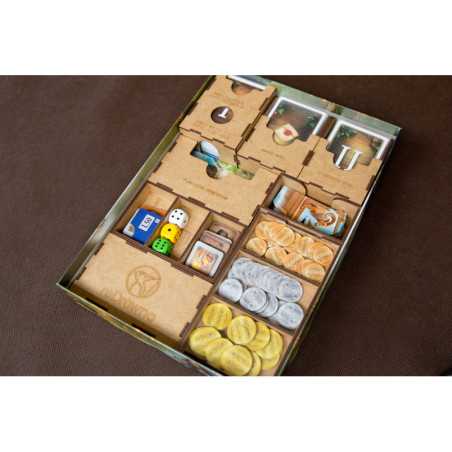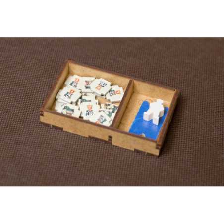 Insert pasujący do gry Piraci z Maracaibo wraz z dodatkiem Dowódcy (Commanders). Pudełko zamyka się całkowicie. Insert mieści karty w koszulkach klasy Premium o grubości do 110 mikronów. Na zdjęciach karty w koszulkach Rebel Premium (90 mikronów). Insert zawiera rezerwę miejsca pod ewentualny kolejny dodatek.