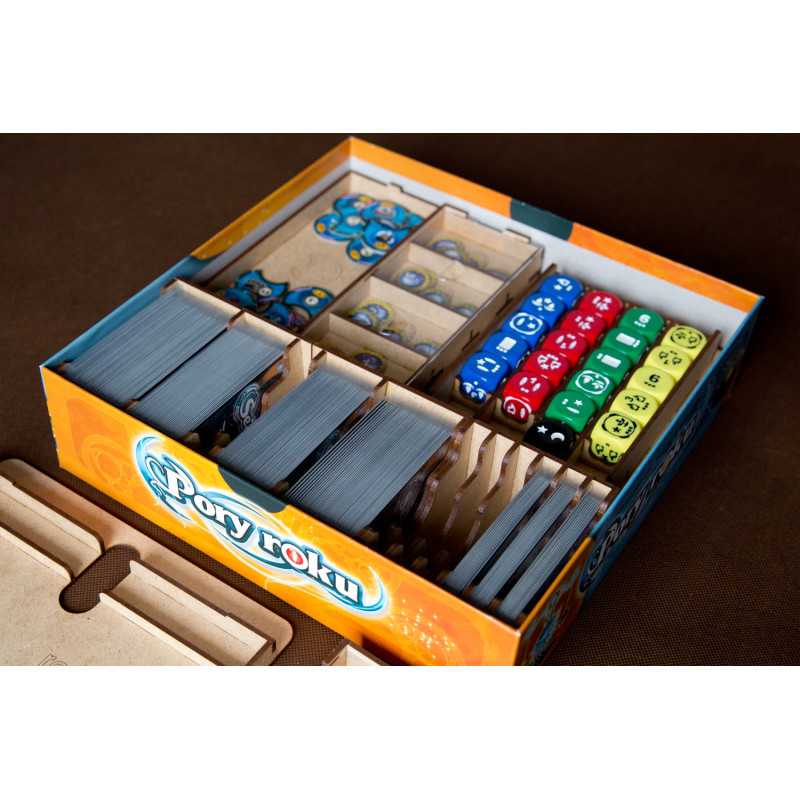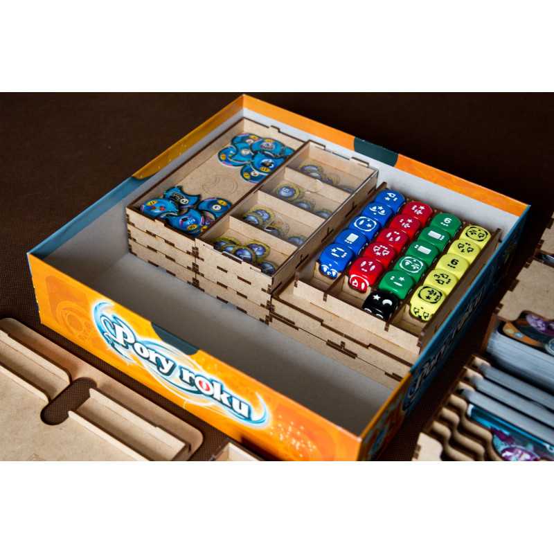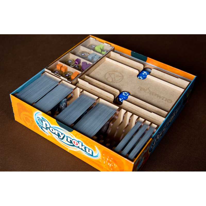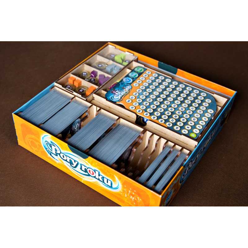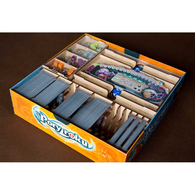 Insert pasujący do gry strategicznej Pory Roku wraz z dwoma dodatkami. Insert mieści karty w koszulkach klasy Premium (bez ograniczenia ich grubości). Na zdjęciach karty w koszulkach Rebel Premium (90 mikronów).