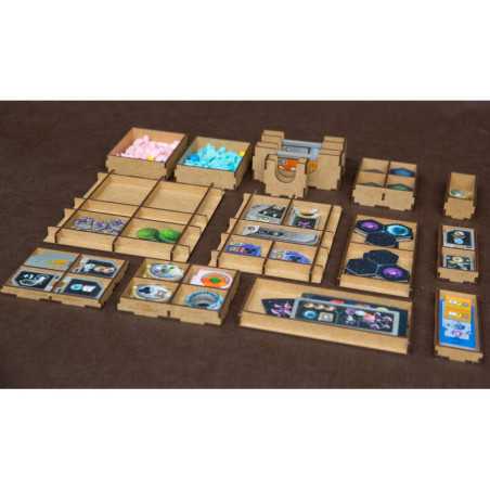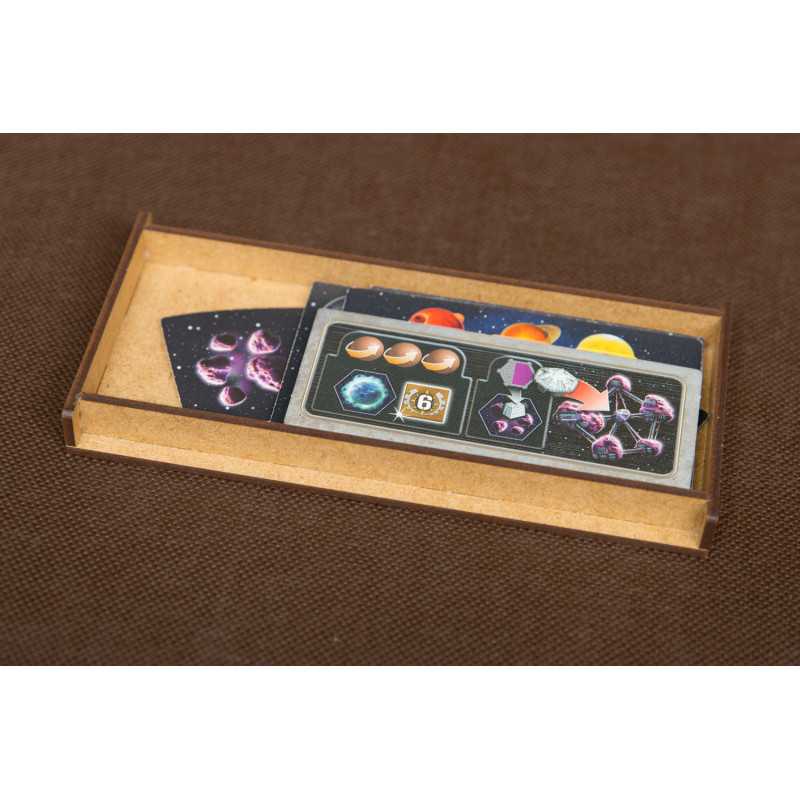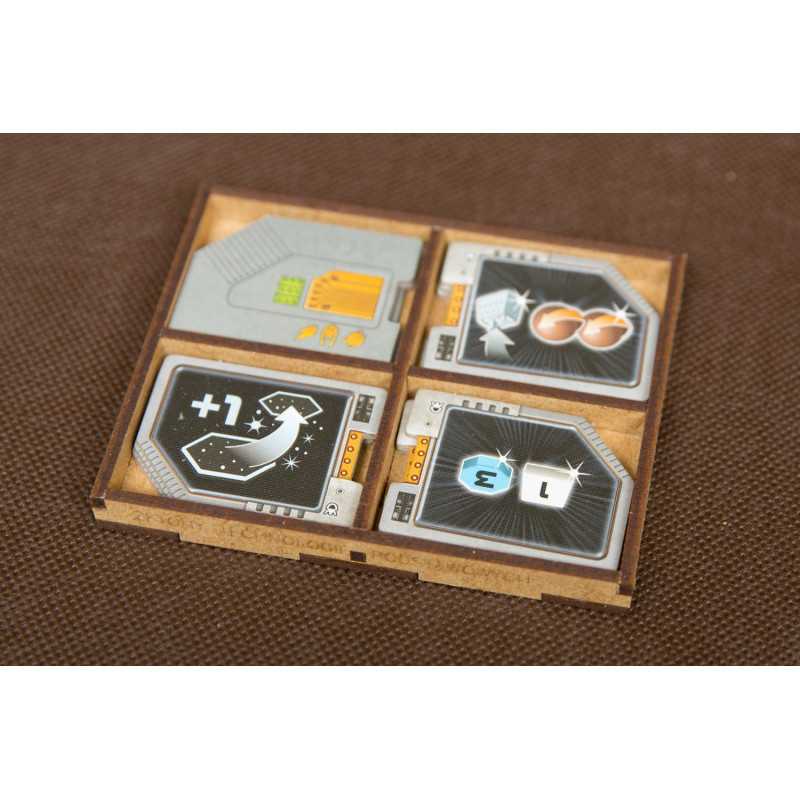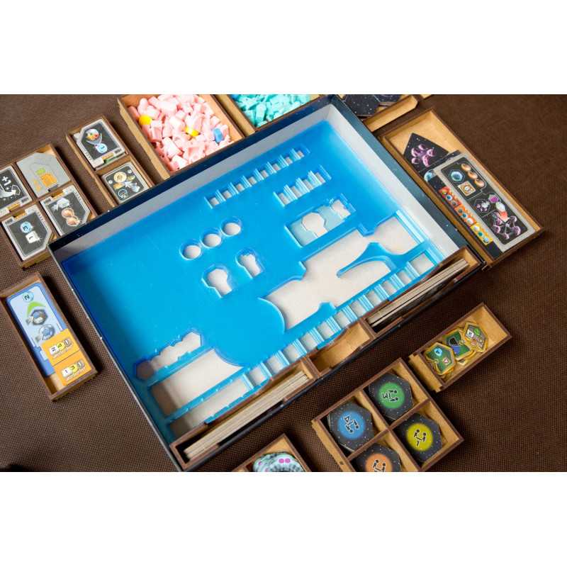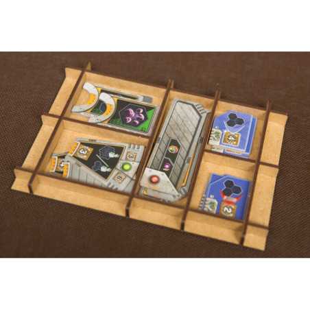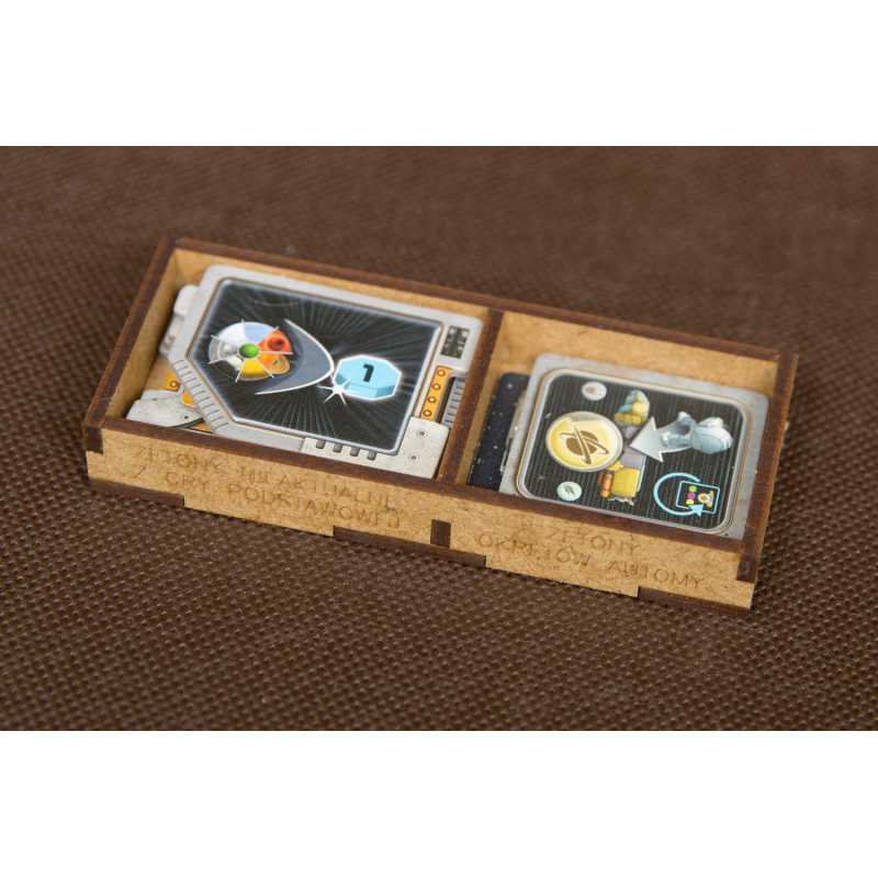 Insert pasujący do gry strategicznej Projekt Gaja: Zaginiona Flota. Insert do pudełka z dodatku mieści pozostałe elementy z dodatku oraz przewiduje miejsce na 5 nakładek z pleksi 3 mm na Plansze Frakcji (osobne akcesorium do dokupienia w sklepie portalgames lub gamingforge). Jeżeli nie posiadasz nakładek w insercie przewidziany jest wypełniacz w ich miejsce. Pudełko zamyka się całkowicie. Insert mieści karty w koszulkach klasy Premium bez ograniczenia grubości. Na zdjęciach karty w koszulkach Portal Games (100 mikronów).