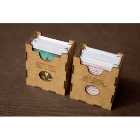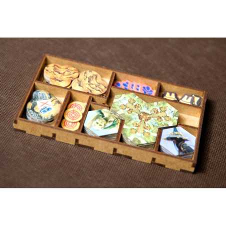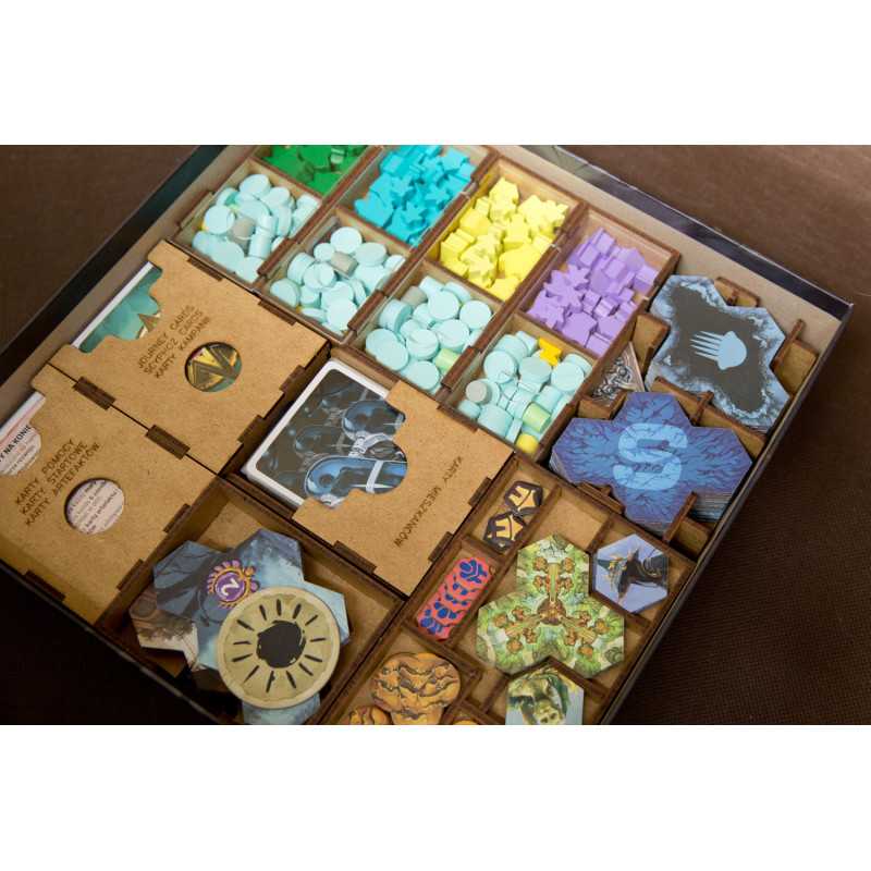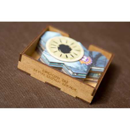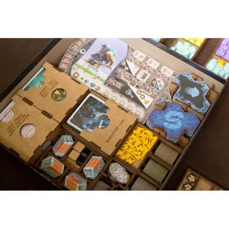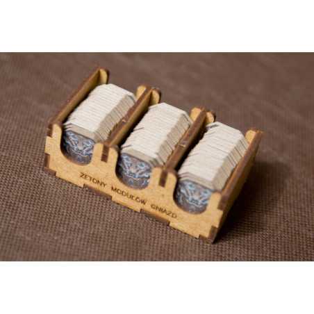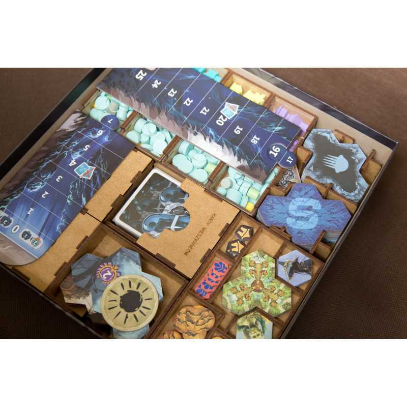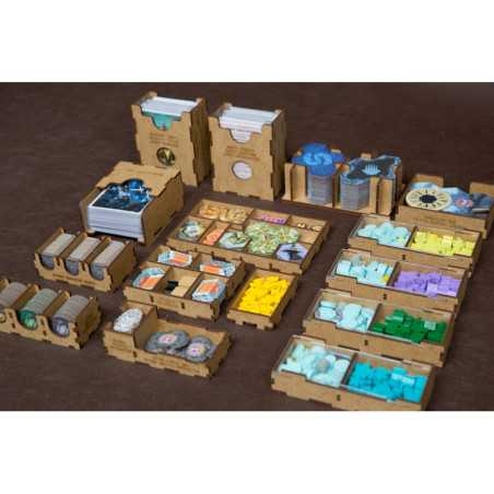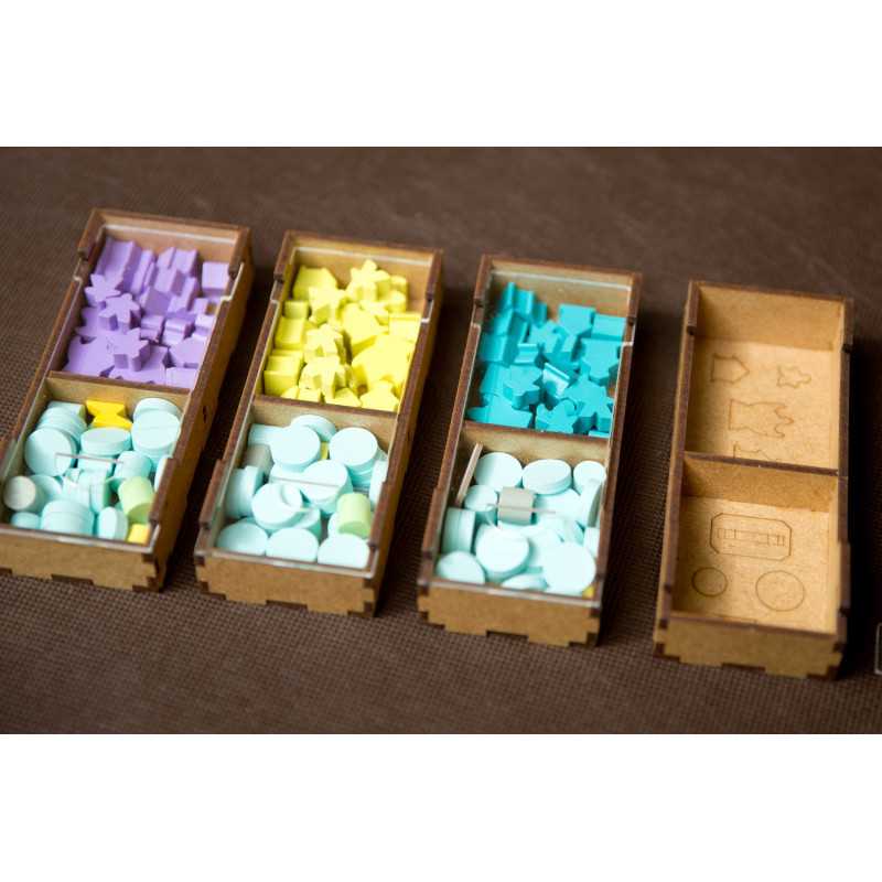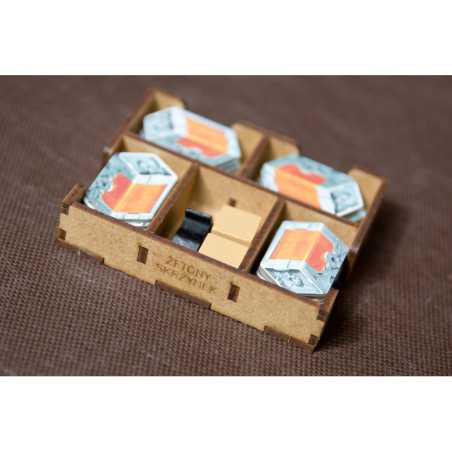 Insert posiada pojemniki na żetony do wyłożenia na stół pozwalające utrzymać porządek podczas rozgrywki oraz pojemnik na karty mieszkańców pełniący funkcję podajnika.