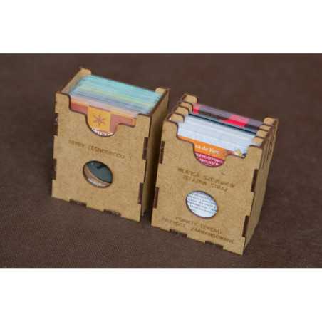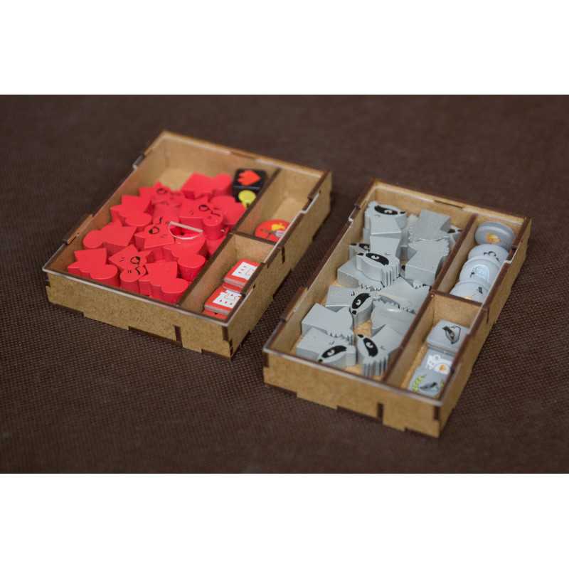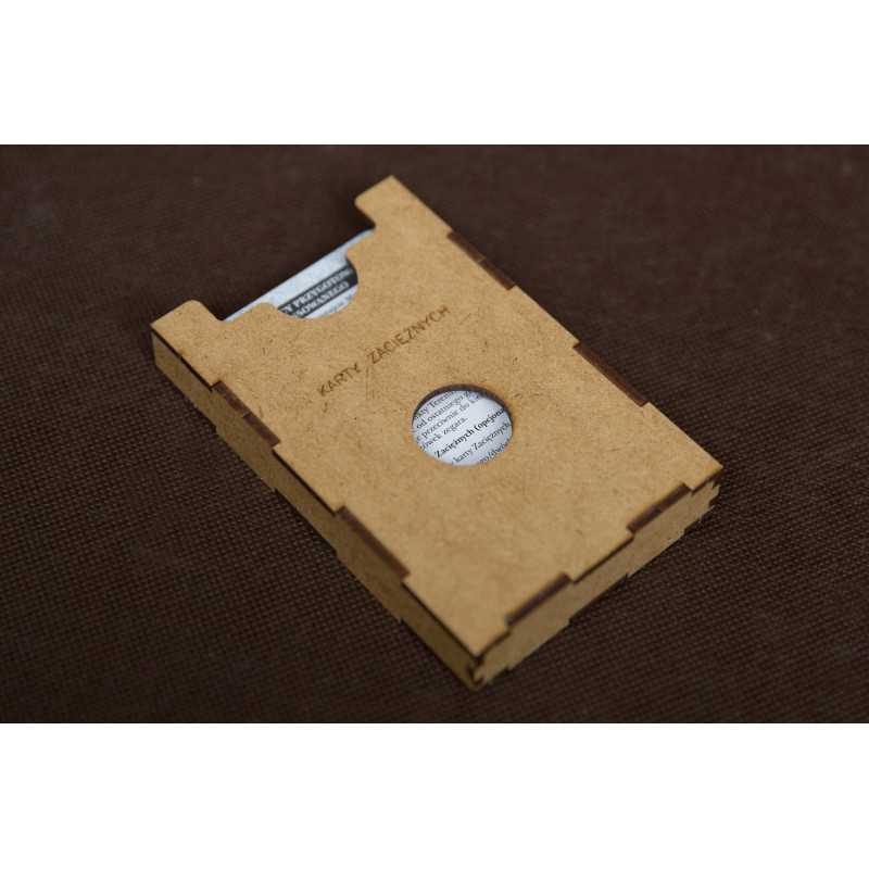 Insert pasujący do dodatków do strategicznej gry ROOT - Maruderzy i Zaciężni. Insert pasuje do pudełek po dużych dodatkach wydanych przez Portal Games w języku polskim (nie pasuje do innych wersji językowych). Insert mieści karty w koszulkach Premium do 100 mikronów. Na zdjęciach karty CCG w koszulach Portal Games.