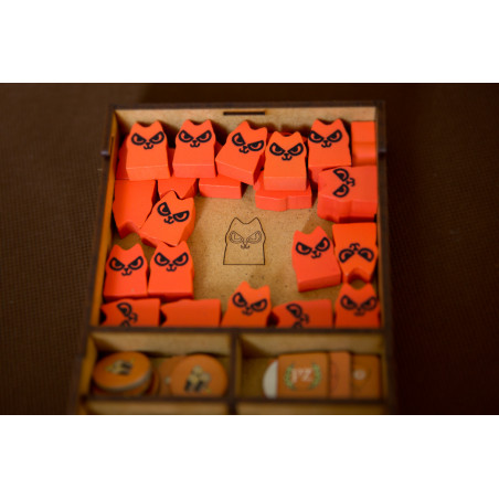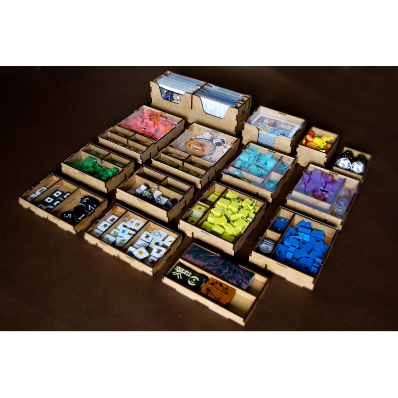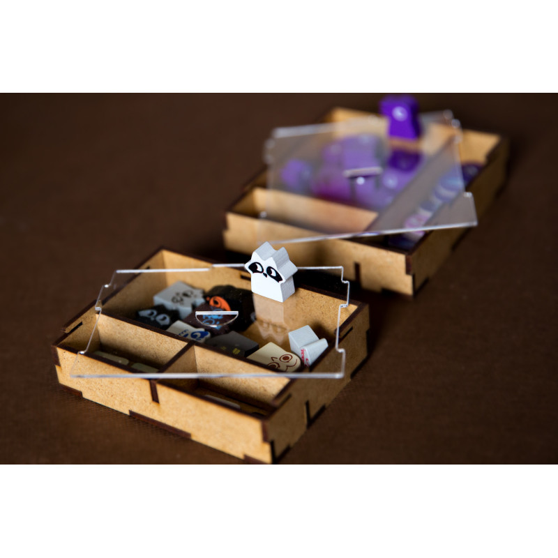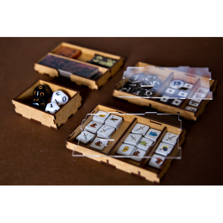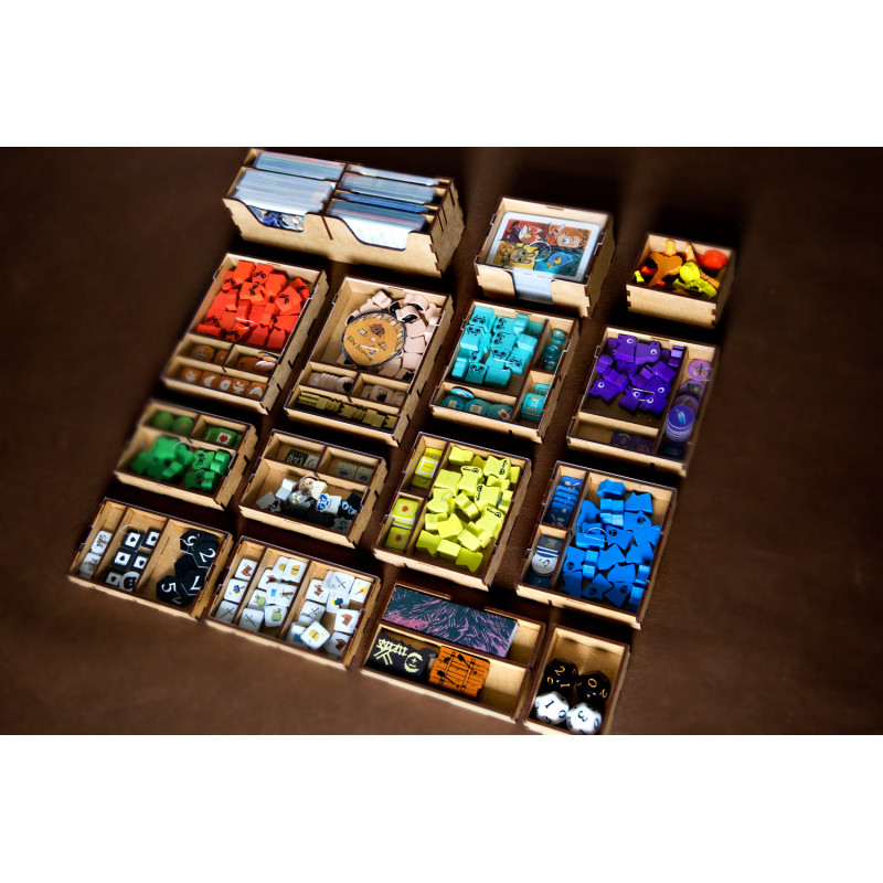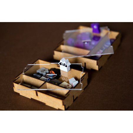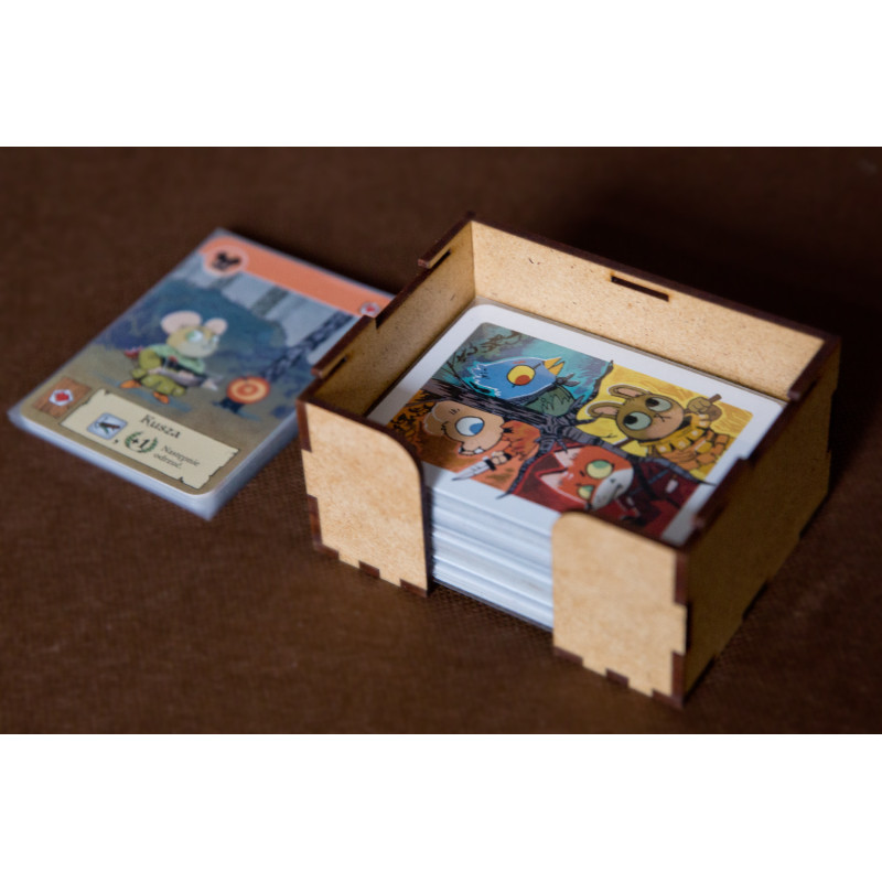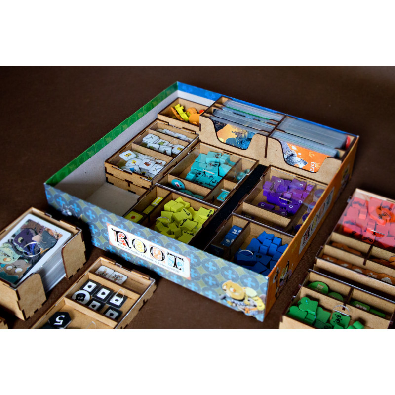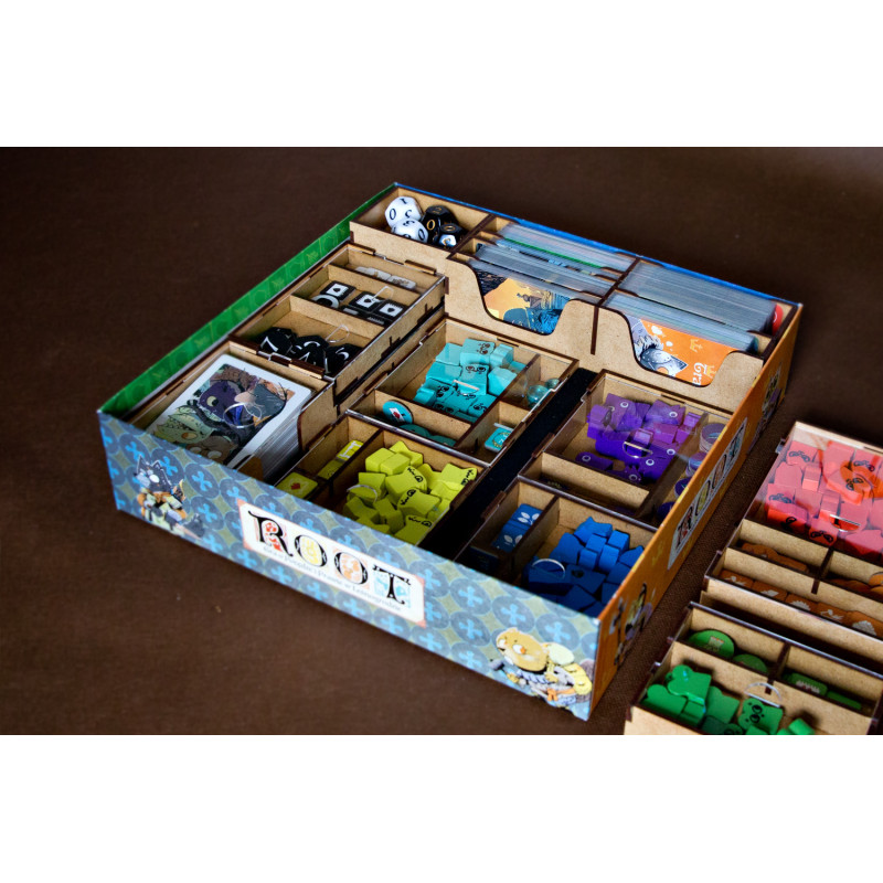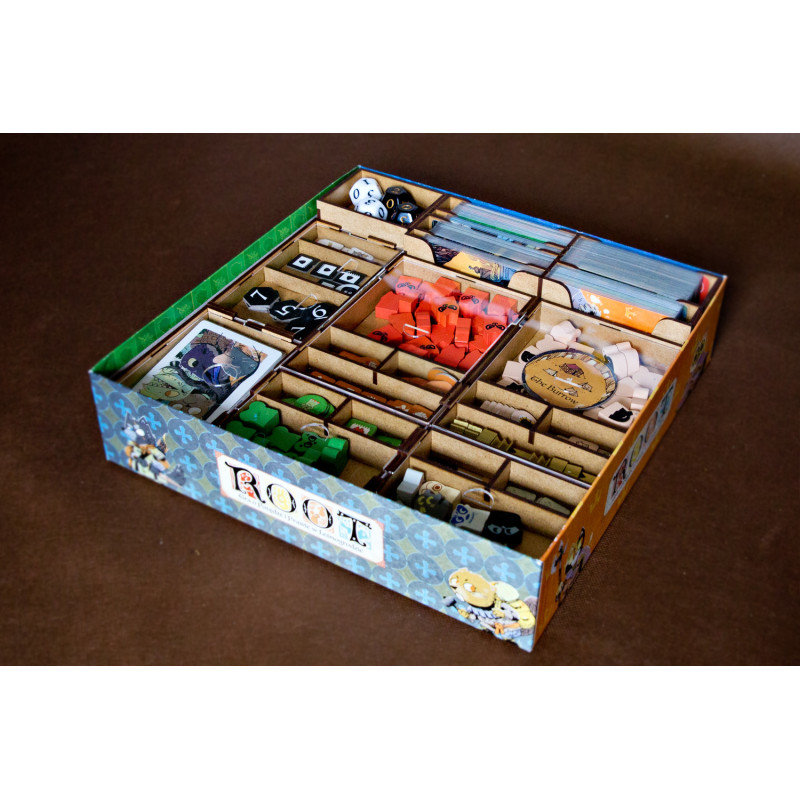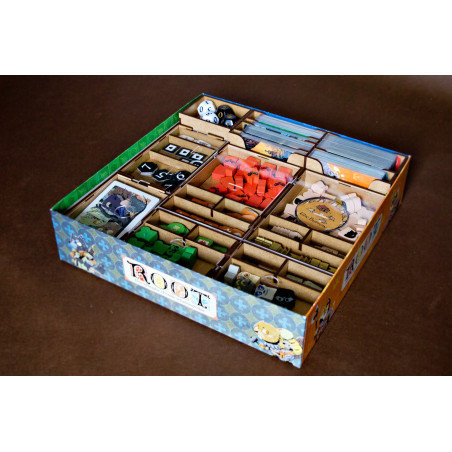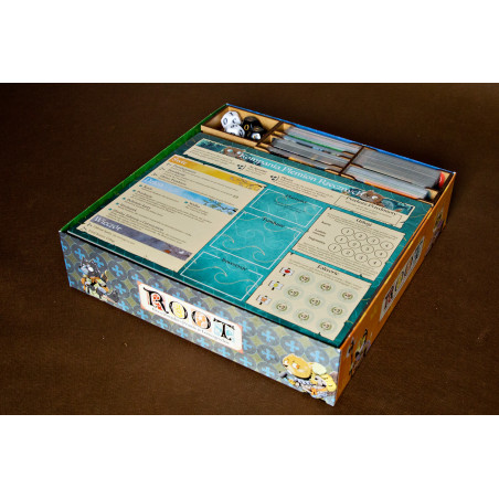 Insert pasujący do strategicznej gry ROOT. Insert pasuje do wydania gry przez Portal Games w języku polskim (nie pasuje do innych wersji językowych). Insert mieści karty w koszulkach Premium do 100 mikronów. Na zdjęciach karty w koszulach Portal Games.