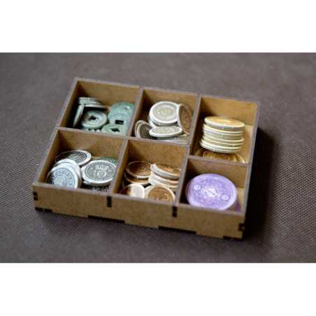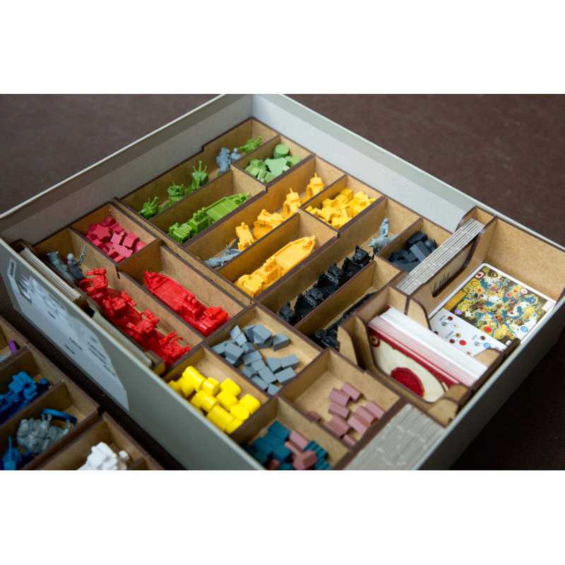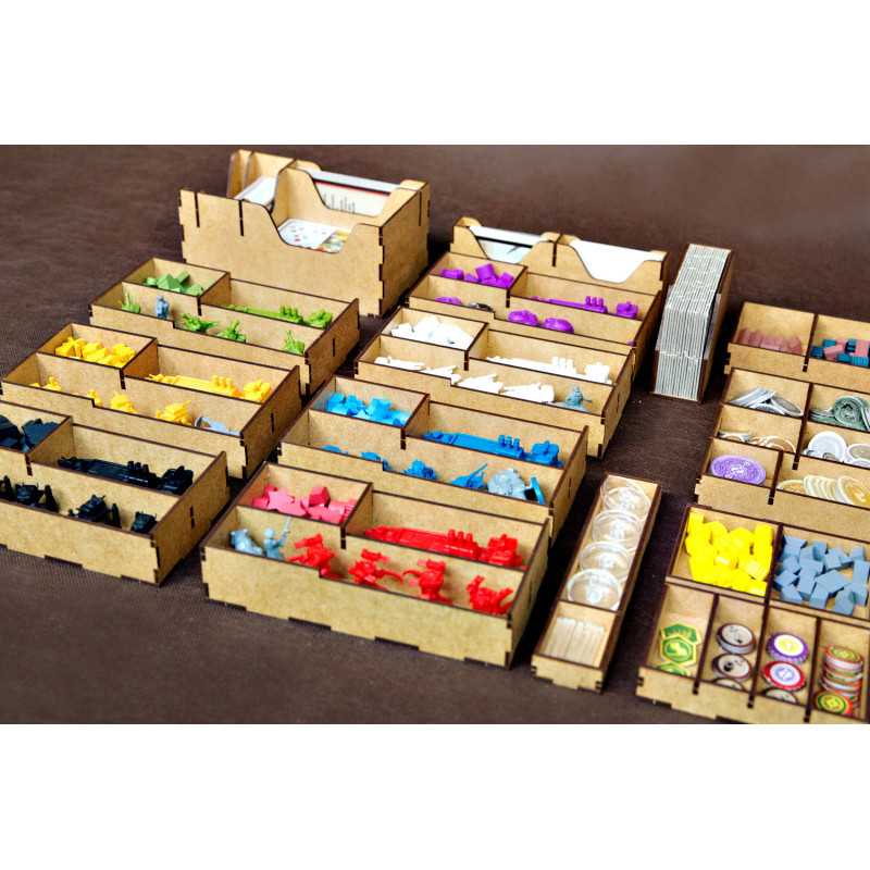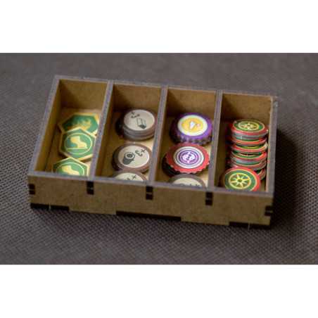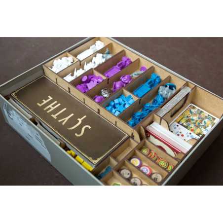 Insert pasujący do gry Scythe. Insert pomieści grę podstawową oraz następujące dodatki: Najeźdźcy z dalekich krain, Igrając z wiatrem oraz dodatkowe karty spotkań.