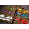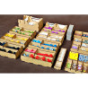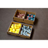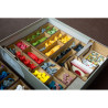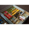 Przegrody na karty są tak zwymiarowane, żeby zmieściły się karty w koszulkach. Po włożeniu wszystkich komponentów pudełko całkowicie się domyka.