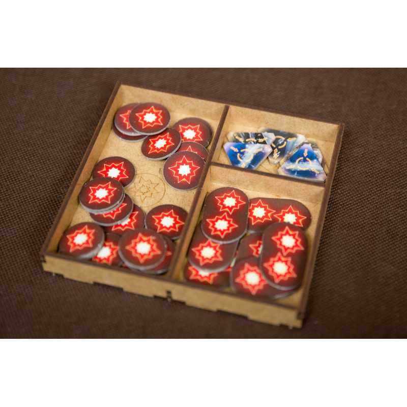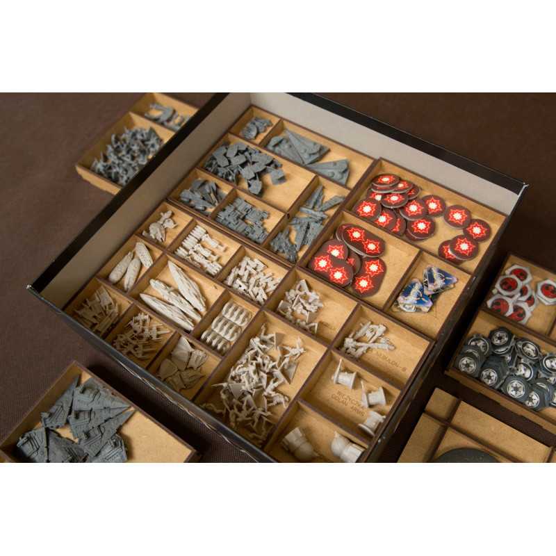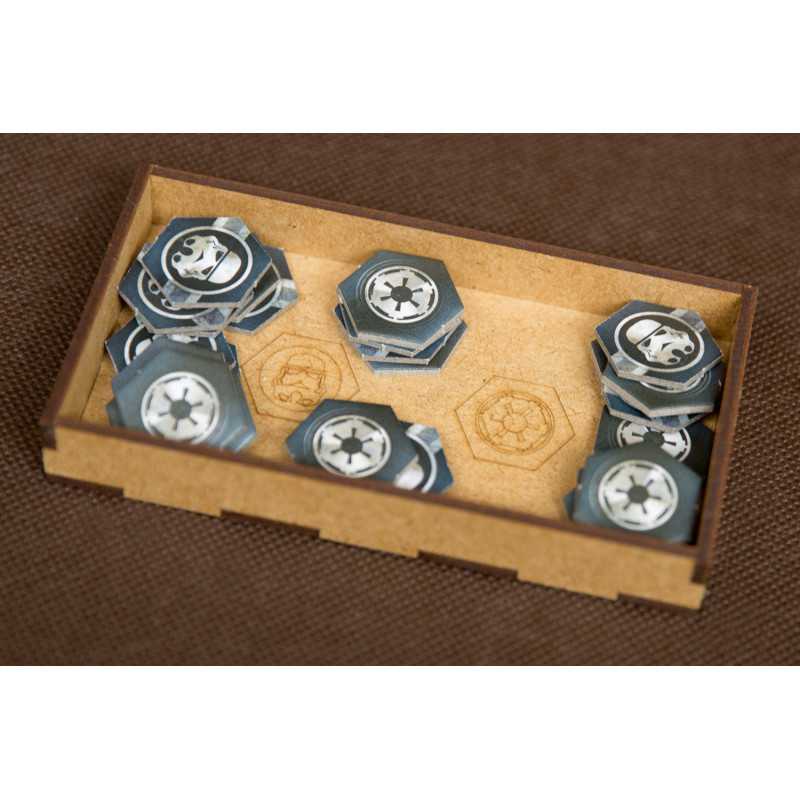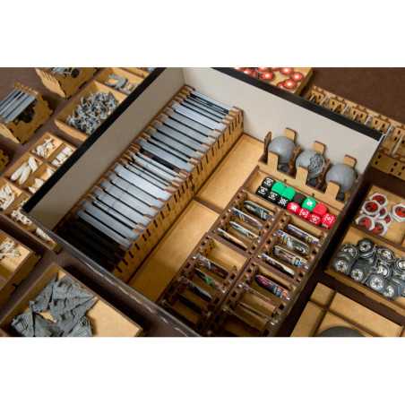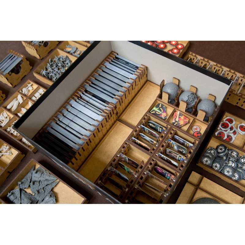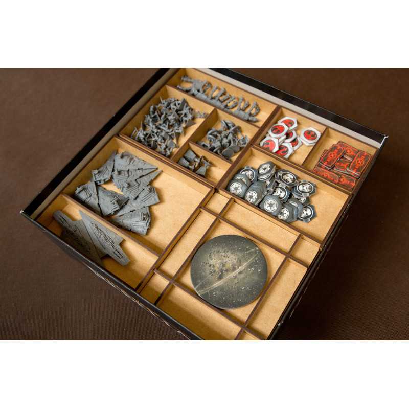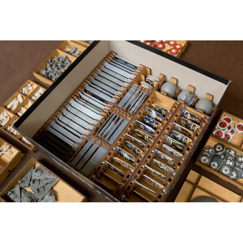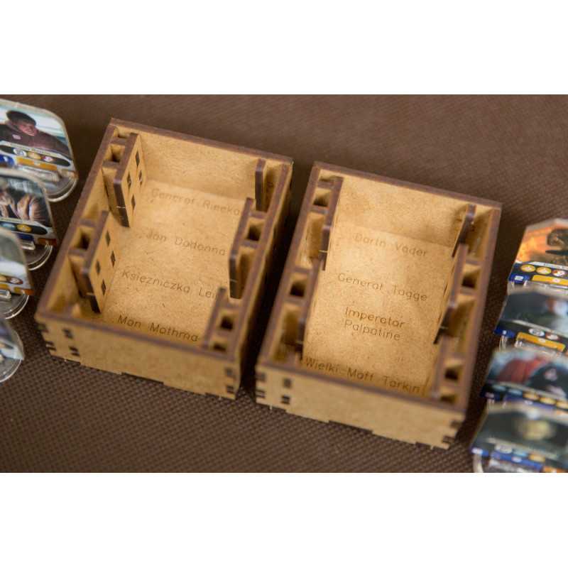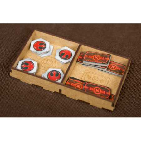 Insert pasujący do epickiej gry Star Wars Rebelia wraz dodatkiem Imperium u Władzy oraz dodatkiem fanowskim. Insert jest niezależny od posiadanych dodatków. Pudełko zamyka się całkowicie. Insert mieści karty w koszulkach klasy Premium do 110 mikronów. Na zdjęciach karty w koszulkach Gamegenic (100 mikronów).