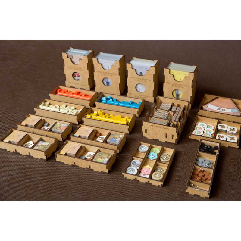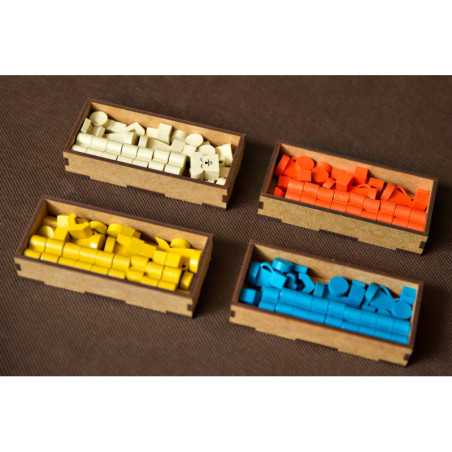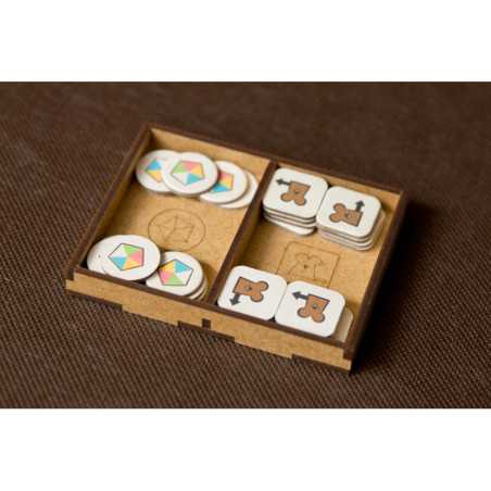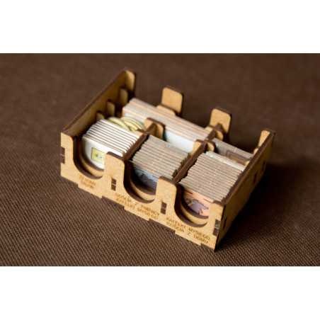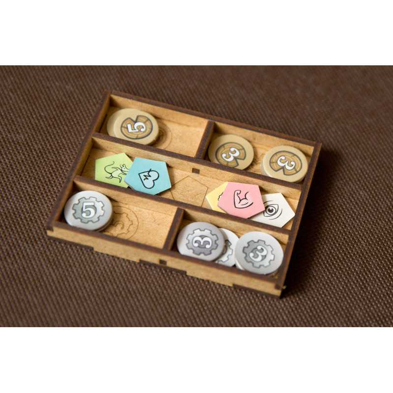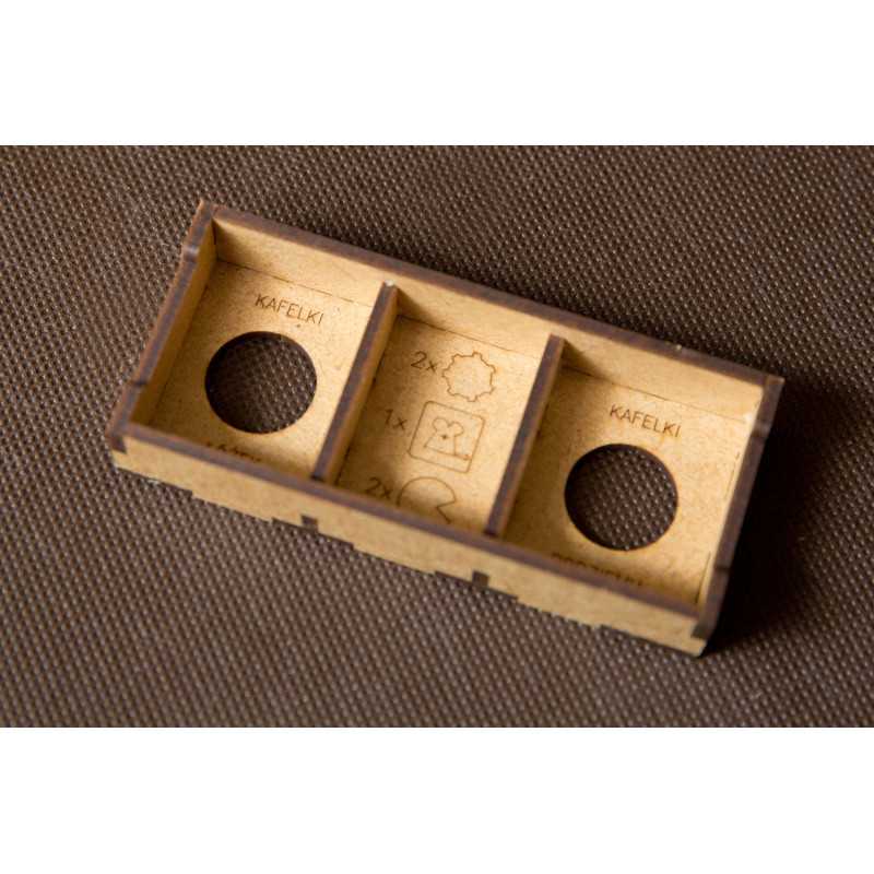 Insert posiada pojemniki na żetony do wyłożenia na stół pozwalające utrzymać porządek podczas rozgrywki.