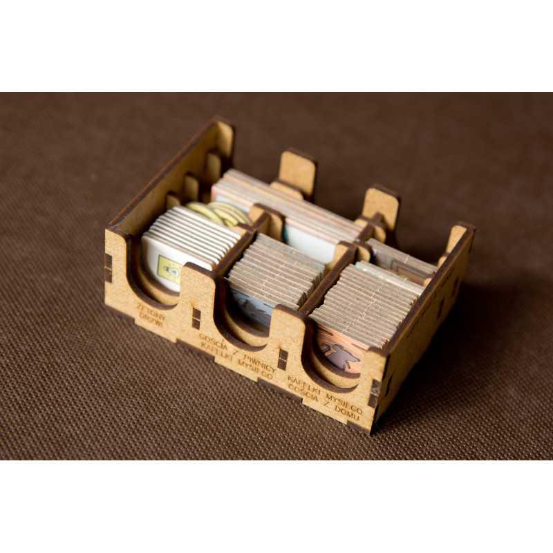 Insert pasujący do gry strategicznej Szczury z Wistar wraz z Promo (Guest Mice Set oraz Objective Cards Set). Insert mieści karty w koszulkach klasy Premium do 100 mikronów. Na zdjęciach karty w koszulkach Standard B Portal Games 58x88mm (100 mikronów) oraz Griffin Rebel Premium 65x100mm (90 mikronów). Pudełko zamyka się bez uniesienia wieka.