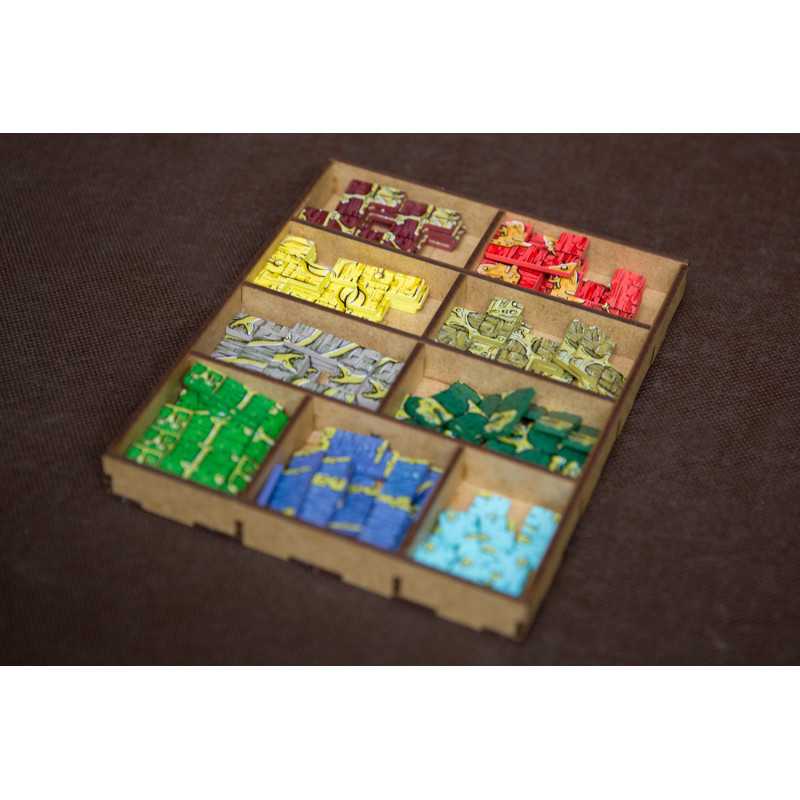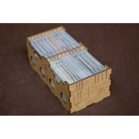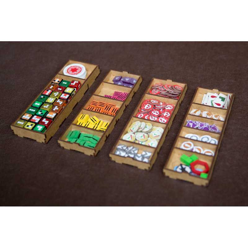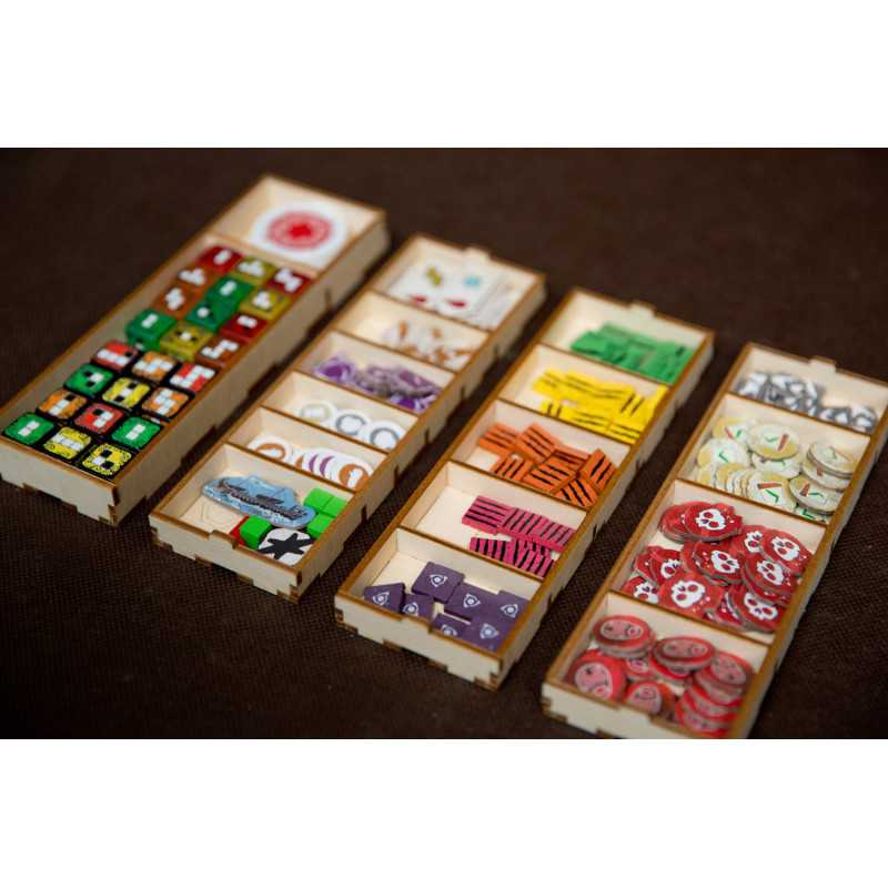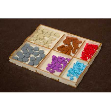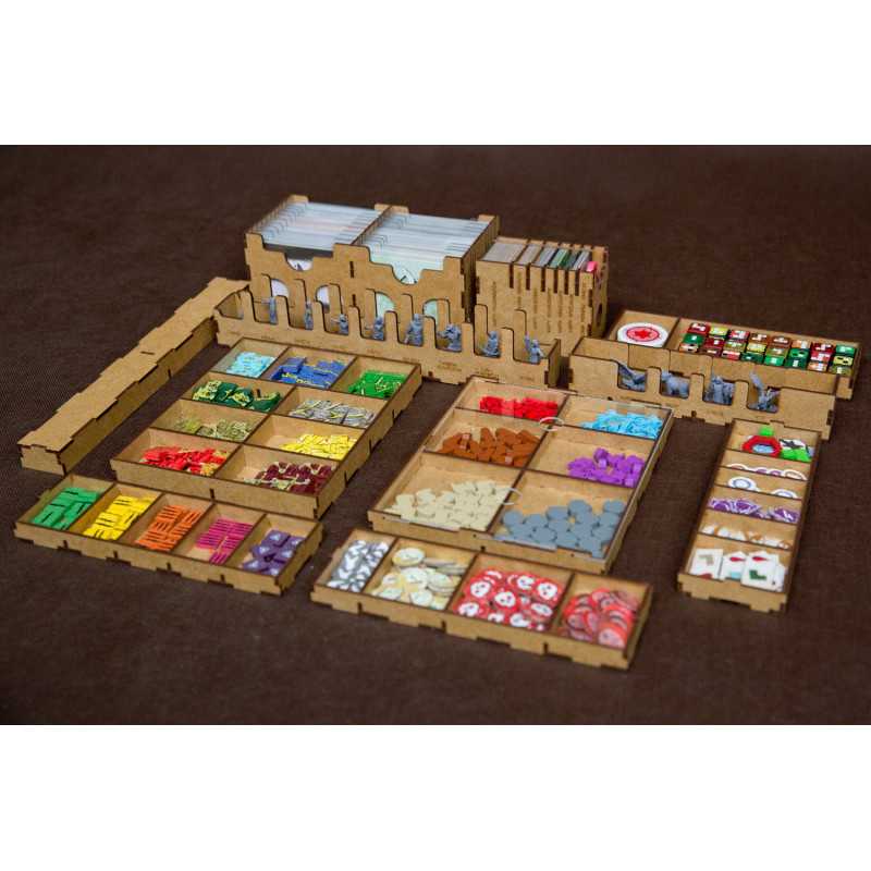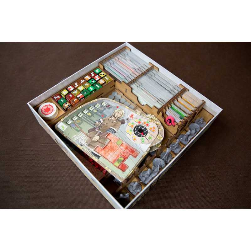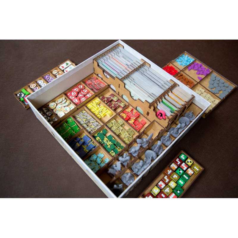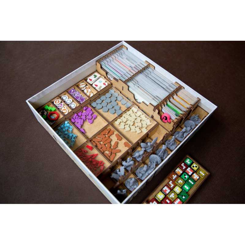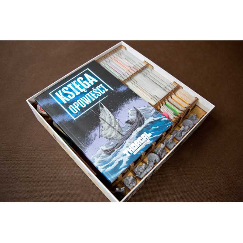 Insert pasujący do przygodowej gry Thorgal ufundowanej w kampanii na platformie Gamefound. Insert nie pasuje do wersji sklepowej (retail). Insert mieści karty w koszulkach klasy Premium (do 110 mikronów). Na zdjęciach karty w koszulkach Portal Games (100 mikronów). Pojemniki na żetony i znaczniki pełnią również funkcję tacek do wyłożenia na stół. Insert nie przewiduje miejsca na matę. Pudełko zamyka się całkowicie.