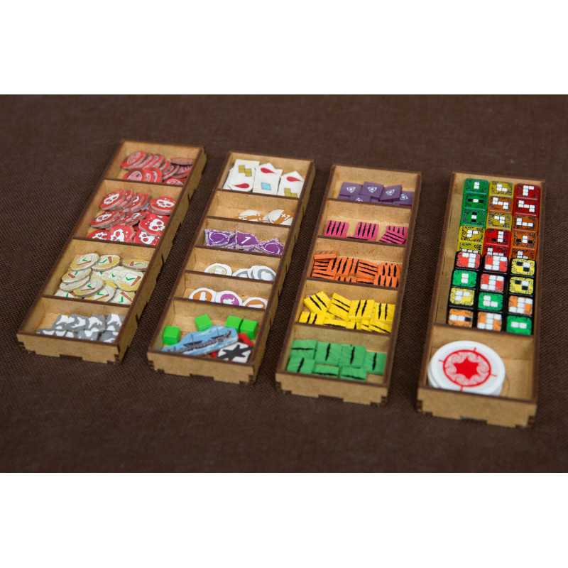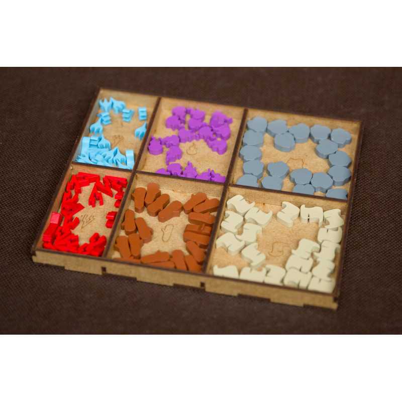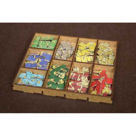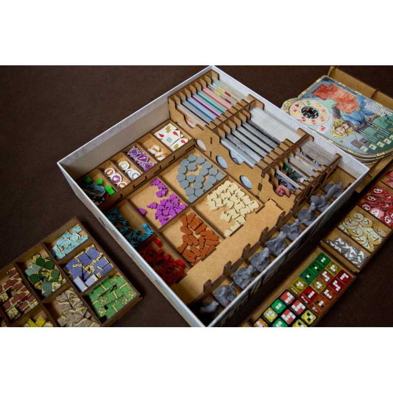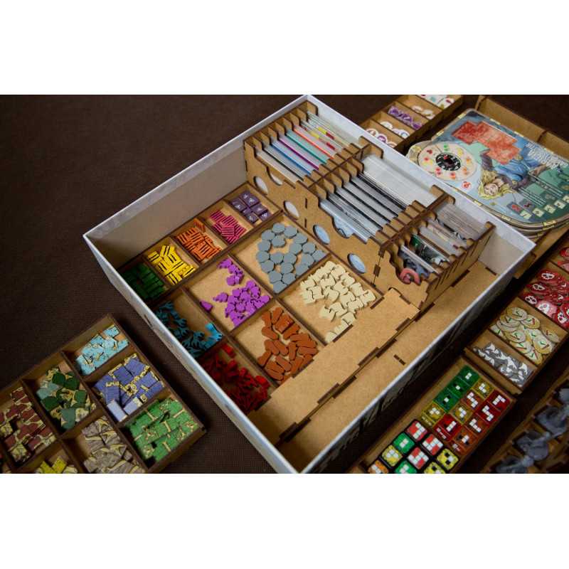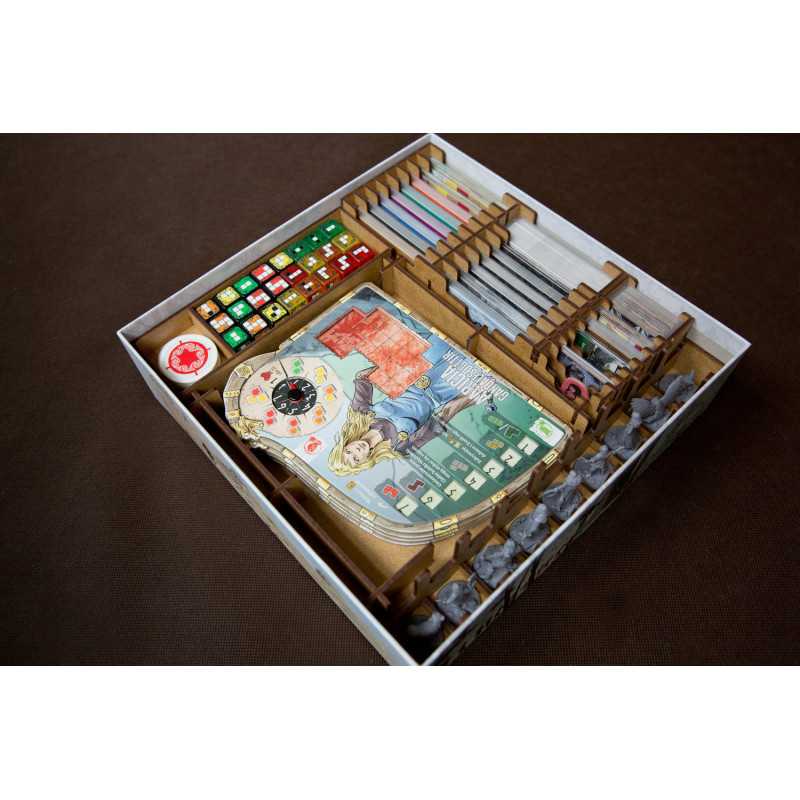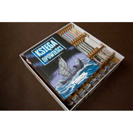 Insert pasujący do przygodowej gry Thorgal z dodatkami - wersja retail (sklepowa). Insert nie pasuje do wersji ufundowanej na platformie Gamefound. Insert mieści karty w koszulkach klasy Premium (do 110 mikronów). Na zdjęciach karty w koszulkach Portal Games (100 mikronów). Pojemniki na żetony i znaczniki pełnią również funkcję tacek do wyłożenia na stół. Insert nie przewiduje miejsca na matę. Pudełko zamyka się całkowicie.