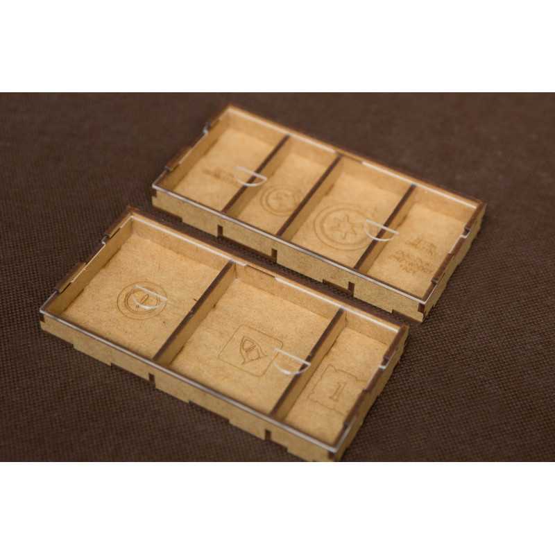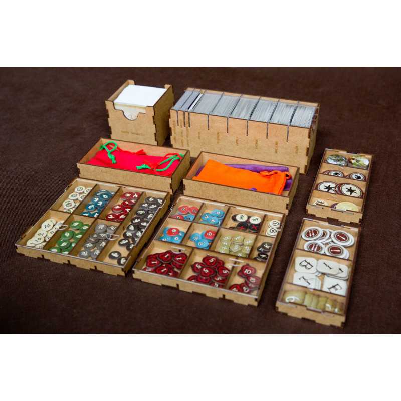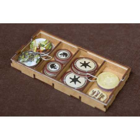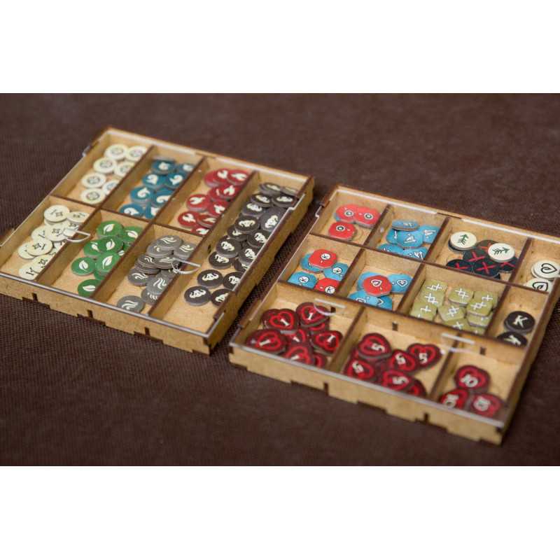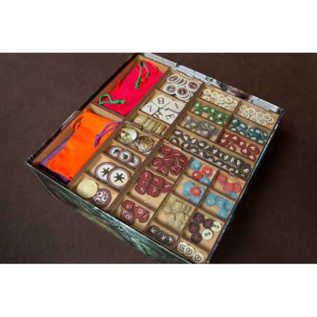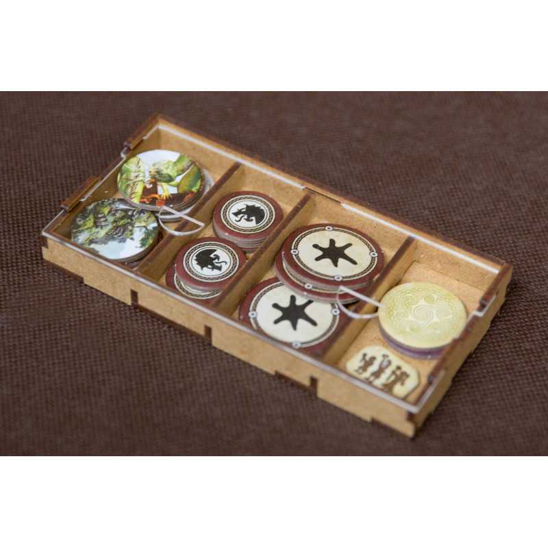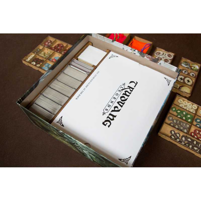 Insert pasujący do gry przygodowej Trudvang Legendy. Pojemniki na żetony i znaczniki pełnią również funkcję tacek do wyłożenia na stół. Figurki przechowywane są w oryginalnej plastikowej wyprasce. Dla kart tasowanych podczas rozgrywki insert przewiduje miejsce na nie w koszulkach klasy Premium do 110 mikronów - są to karty Ataku Wroga / karty Wydarzeń / karty Wyczynów dla każdego z Bohaterów. Pozostałe karty są bez koszulek. Na zdjęciach karty w koszulkach Gamegenic 100 mikronów. Komory na karty Bohaterów przewidują więcej miejsca, tak aby była możliwe "zapisanie" rozgrywki dla danej postaci.