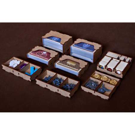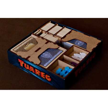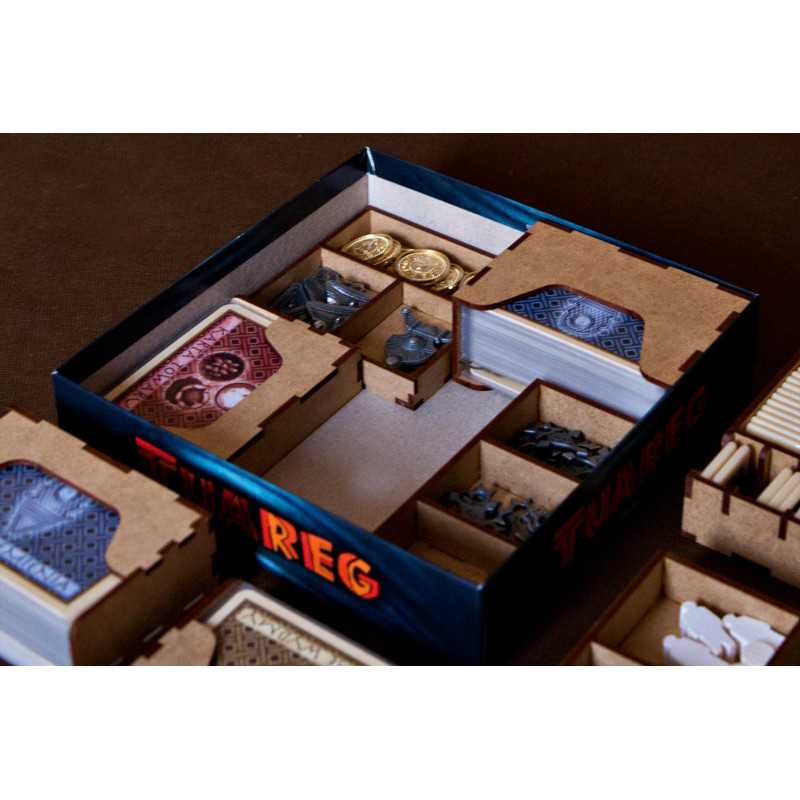 Insert pasujący do gry Tuareg wraz z rozszerzeniem. Insert pomieści karty w koszulkach klasy Premium (na zdjęciach karty w koszulkach Gamegenic Prime - 100 mikronów). Wymiar pojemników na karty 64x95 mm.