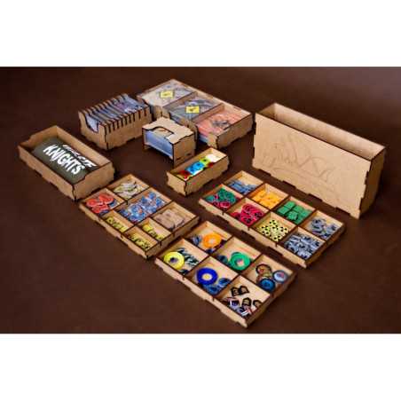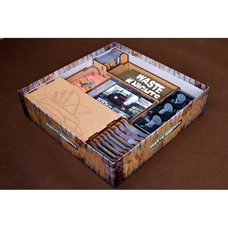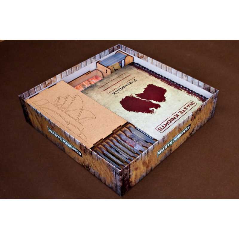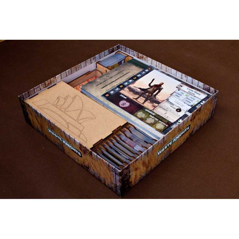 Insert pasujący do gry przygodowej Waste Knights - wersja sklepowa (nie pasuje do wersji KS, czyli wydanej na platformie Kickstarter). Pudełko z grą domyka się bez uniesienia wieka. Insert mieści karty w koszulkach klasy Premium - na zdjęciach karty w koszulkach Gamegenic Prime o grubości 100 mikronów.