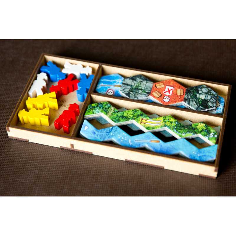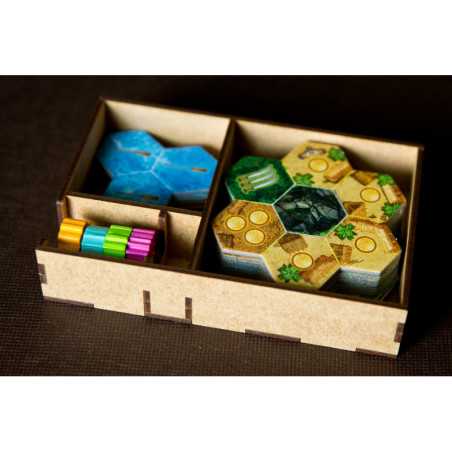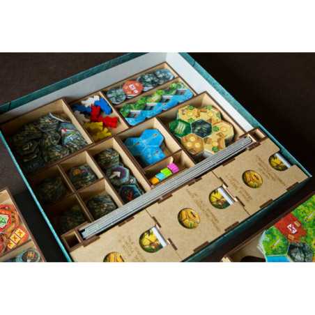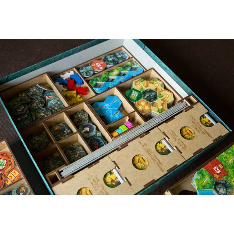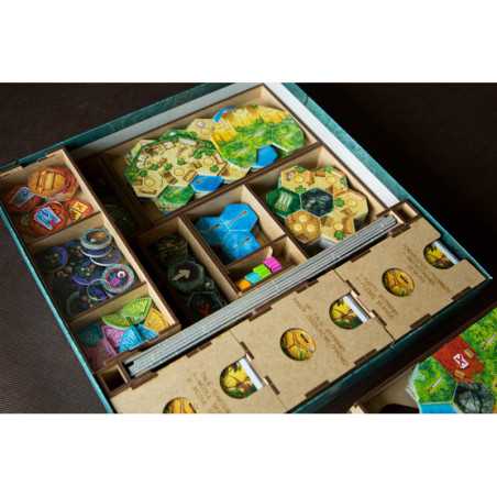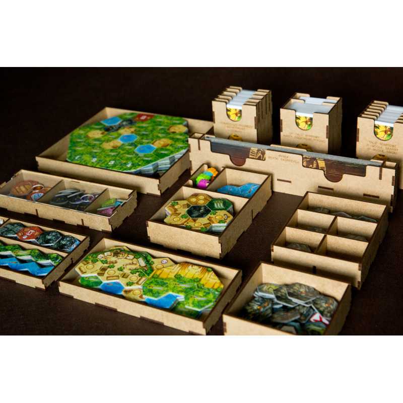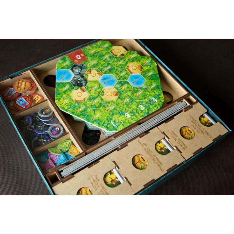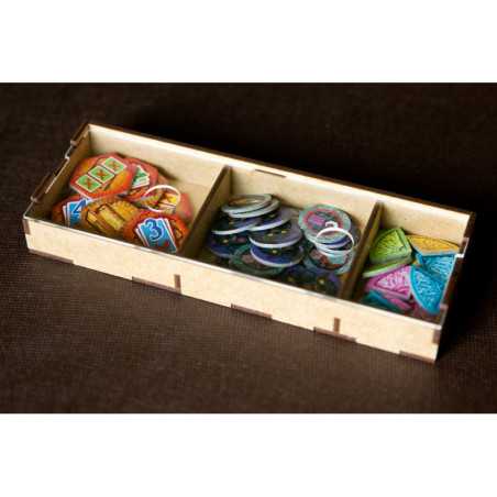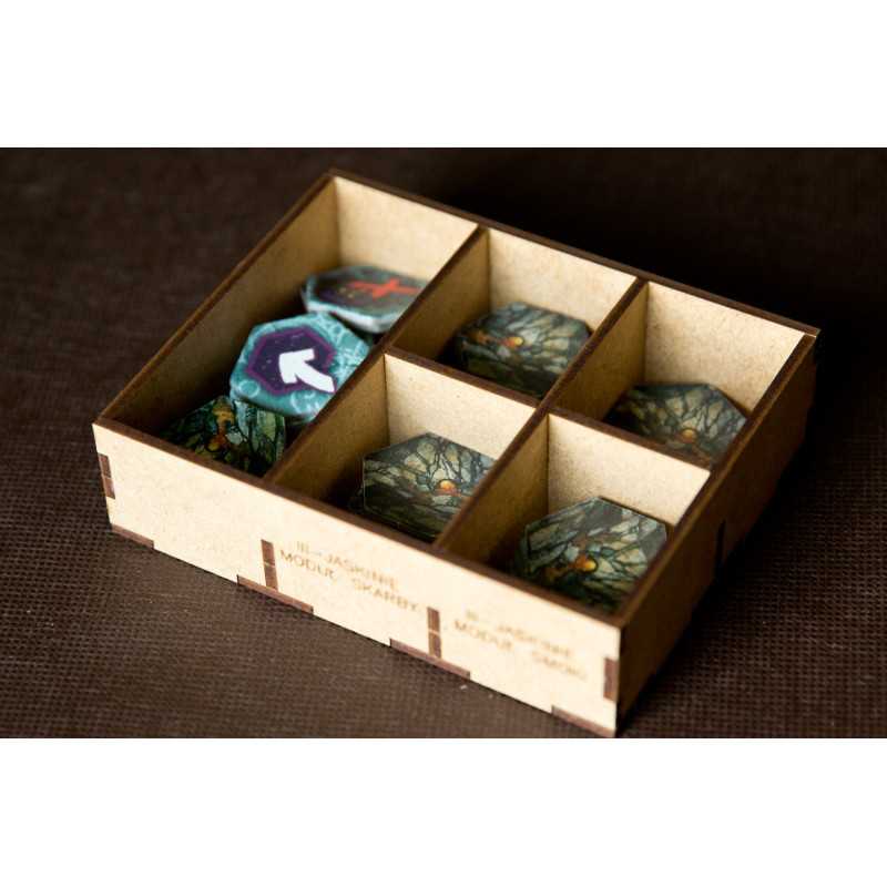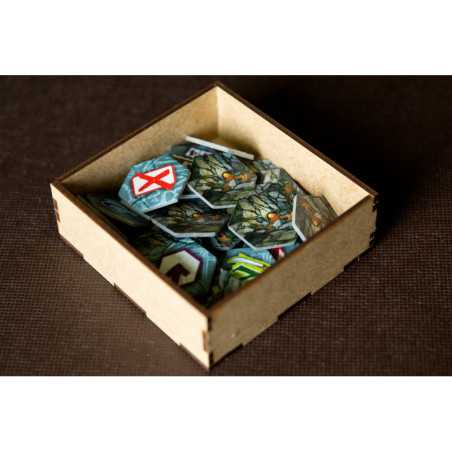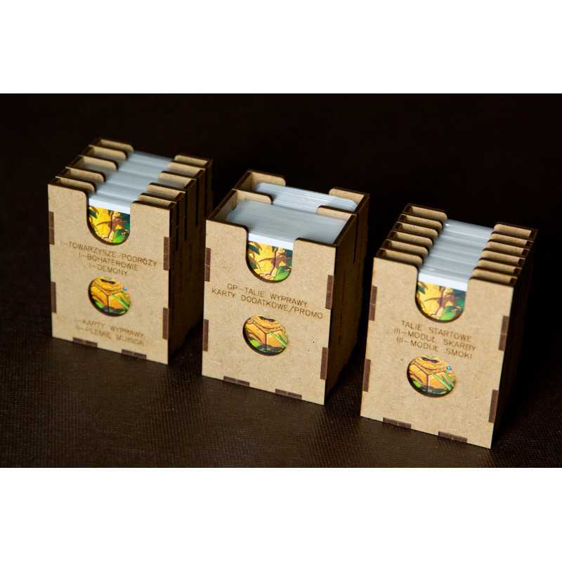 Pojemniki w insercie posiadają grawery ułatwiające posegregowanie elementów. Wierzchnie pojemniki z drobnymi żetonami są zasuwane co pozwala na pionowe przechowywanie pudełka. Pojemniki na karty segregują je wg dodatków i rodzajów. Pojemniki na żetony jaskiń pozwalają na ich rozdzielenie wg dodatków.