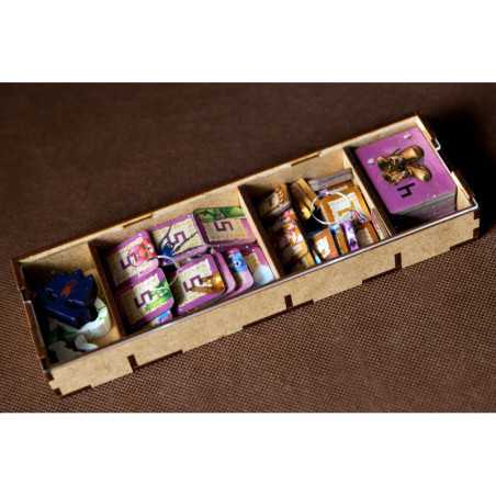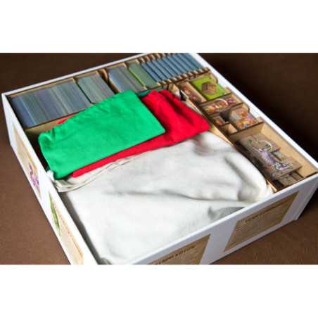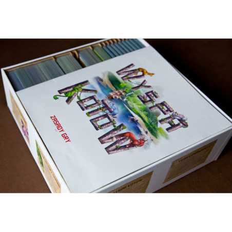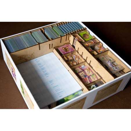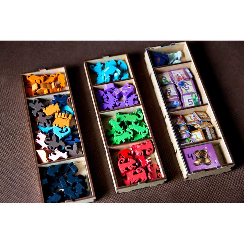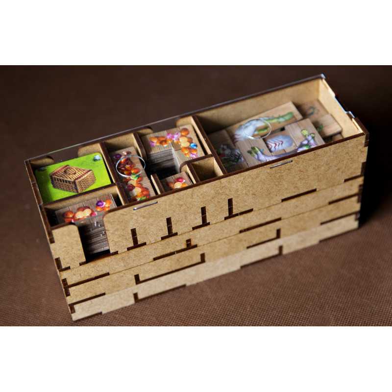Drugi pojemnik na karty zawiera 11 komór z przekładkami w celu osobnego wydzielenia: zestawu kart rodzinnych, zestawu kart do rozgrywki solo oraz 9 zestawów kart lekcji.