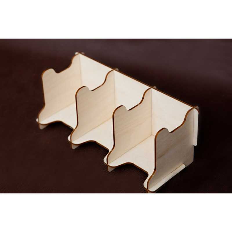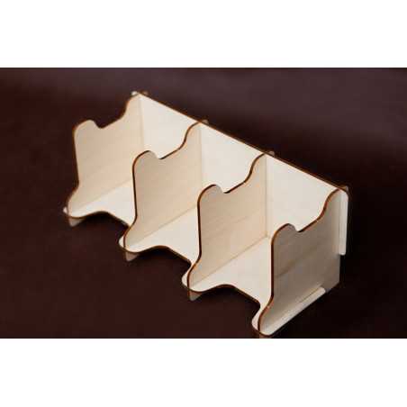Podajnik na 3 talie pasujący do kart Standard CCG (63,5x88 mm). Dno podajnika wykonane pod kątem co zapobiega przypadkowemu wypadaniu kart ze stosu.