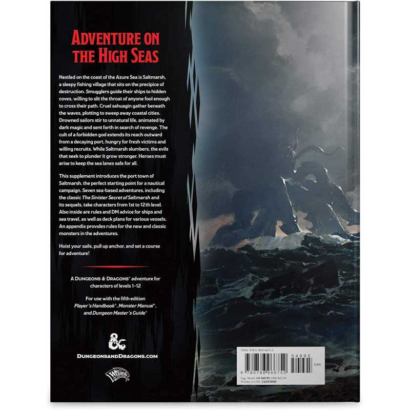 Ghosts of Saltmarsh brings classic adventures into fifth edition Dungeons & Dragons. This adventure book combines some of the most popular classic adventures from the first edition of Dungeons & Dragons including the classic "U" series, plus some of the best nautical adventures from the history of Dungeon Magazine: Sinister Secret of Saltmarsh, Danger at Dunwater, Salvage Operation, Isle of the Abbey, The Final Enemy, Tammeraut's Fate, The Styes.