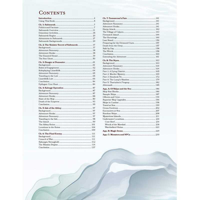 All adventures have been faithfully adapted to the fifth edition rules of Dungeons & Dragons. Furthermore, this book includes details on the port town of Saltmarsh, as well as plenty of hooks to kick-off each adventure.