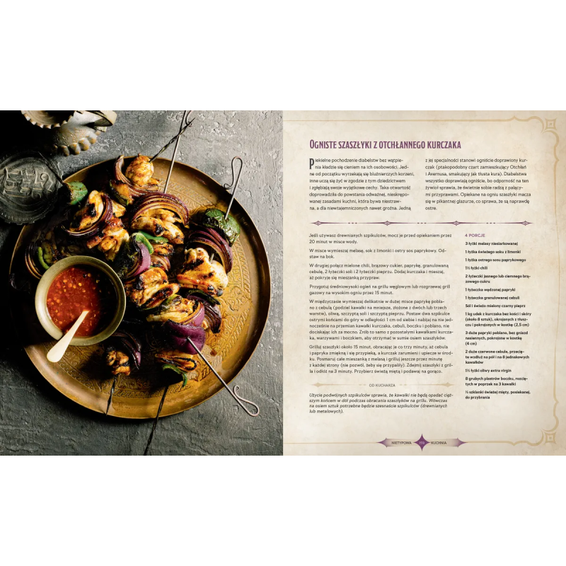 Księga zawiera aż 80 prostych w przygotowaniu przepisów ze składników łatwo dostępnych w naszym świecie. Rozsmakuj się w wyjątkowych daniach i poznaj nieznane dotąd ciekawostki z Zapomnianych Krain, które zaspokoją głód każdej przygody.