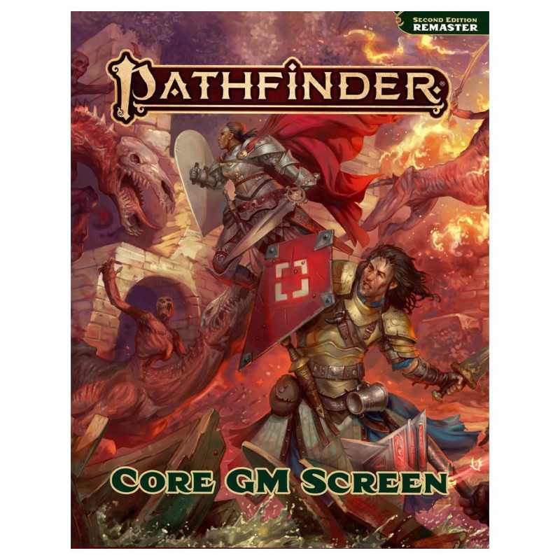 A good Game Master keeps many secrets, only to reveal them to the players when the time is right. Keep your secrets safe behind the Pathfinder Core GM Screen. This sturdy four-panel horizontal screen features a stunning battle scene on one side and handy charts and game tables on the other side to give a busy GM everything they need to run Pathfinder. This screen has been updated with rules from the Pathfinder Remaster and includes a useful chart of new terms, making it simple to run any adventure from Pathfinder Second Edition!