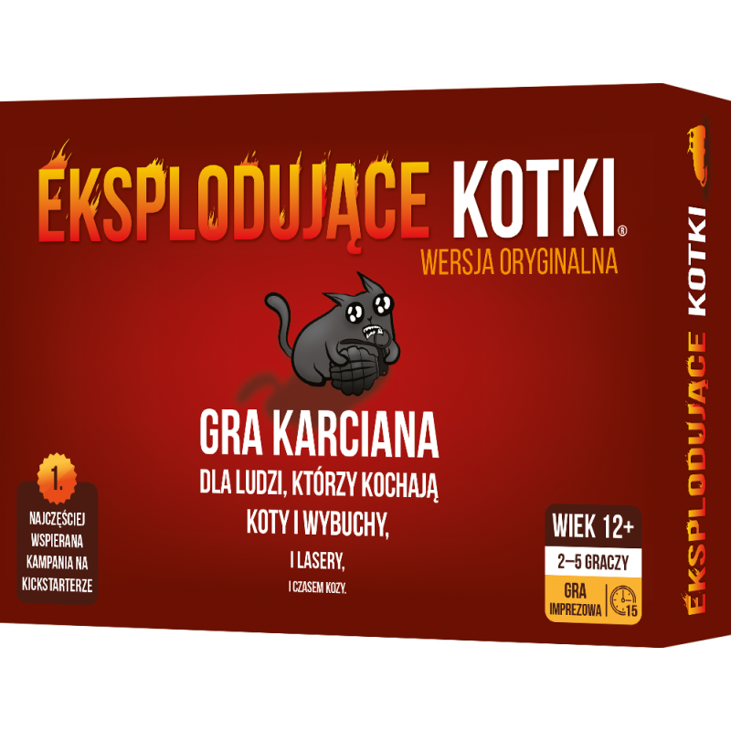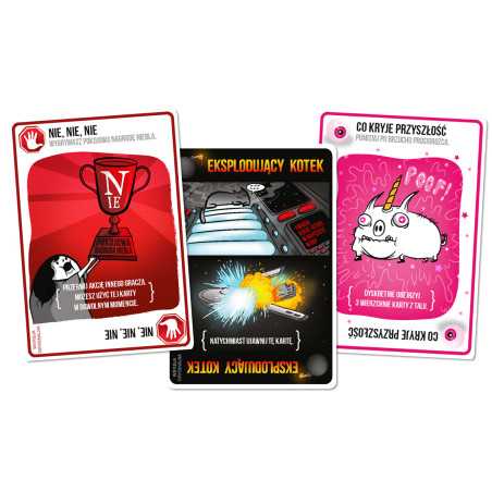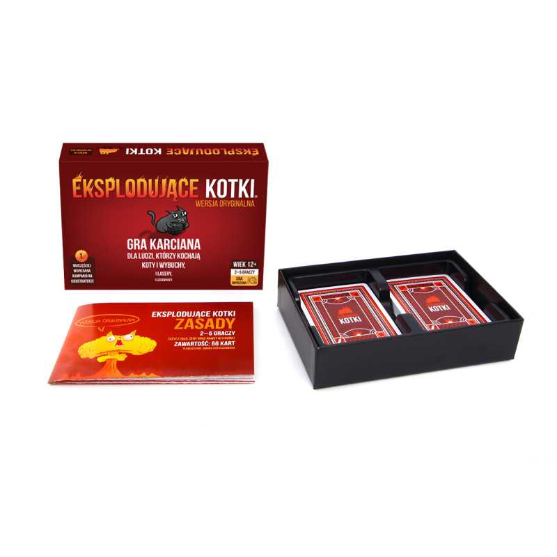 Sprawdź, na czym polega fenomen kultowej karcianki i spróbuj swoich sił w oszukiwaniu przeznaczenia! Eksplodujące Kotki to napędzana kociakami, całkowicie bezpieczna odmiana rosyjskiej ruletki. Podczas rozgrywek gracze co turę dobierają po jednej karcie, aż do momentu, gdy ktoś wyciągnie eksplodującego kotka – taki nieszczęśnik wybucha i ginie, a tym samym kończy grę. Na szczęście w talii są też karty, dzięki którym możemy odwlekać nieuniknione (a raczej przerzucić je prosto na przeciwników). Aby wygrać, musimy mądrze zarządzać kartami, które uda nam się zdobyć.