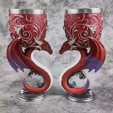 Epicki kielich wykonany z żywicy, z wkładką ze stali nierdzewnej i pięknymi zdobieniami.